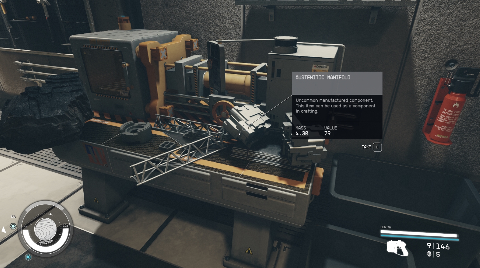 Исследовательские станции и мастерские умеют "доставать" материалы не только из инвентаря персонажа, но и из грузового отсека его корабля. Это означает, что вы можете сложить в отсек все предметы, которые не требуются вам на каждом шагу (минералы, материалы и просто тяжелые запчасти), и все равно иметь возможность пользоваться ими для крафта.