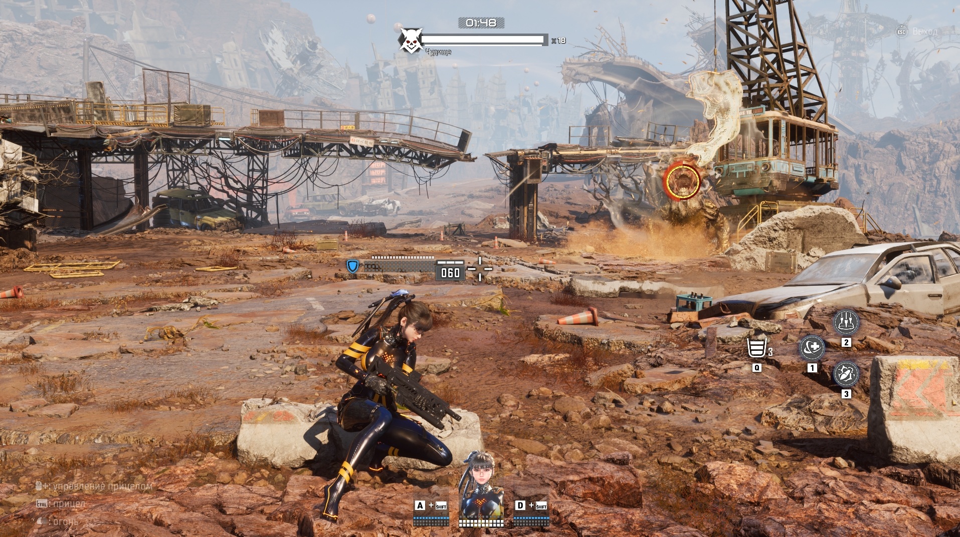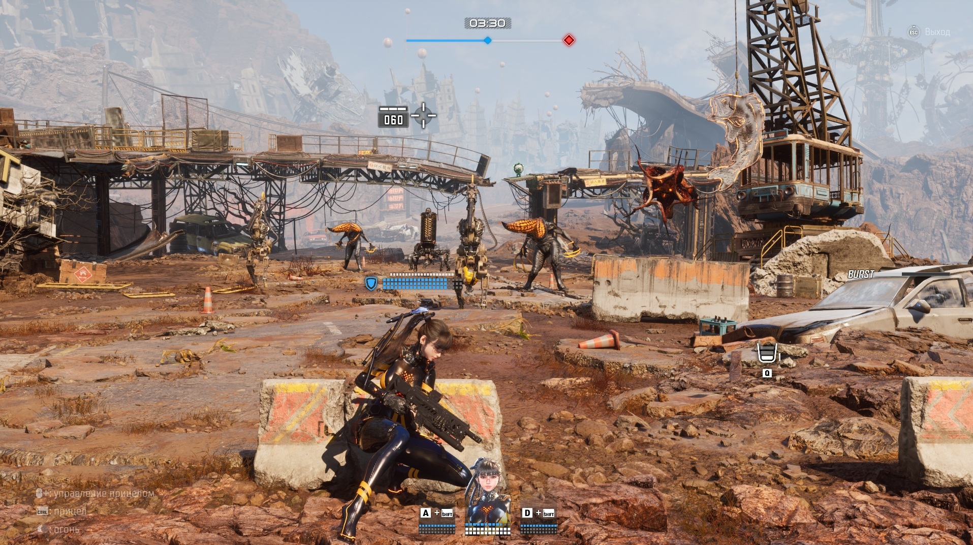Четвертая волна состоит всего из 1 противника – элитного биотива под названием Чудище. Он непрерывно атакует Еву воздушными вихрями, избежать урона от которых можно только путем быстрого перемещения от одного укрытия к другому. Когда существо начнет реветь (появится индикатор), выстрелите ему в голову для прерывания способности и непродолжительного оглушения.