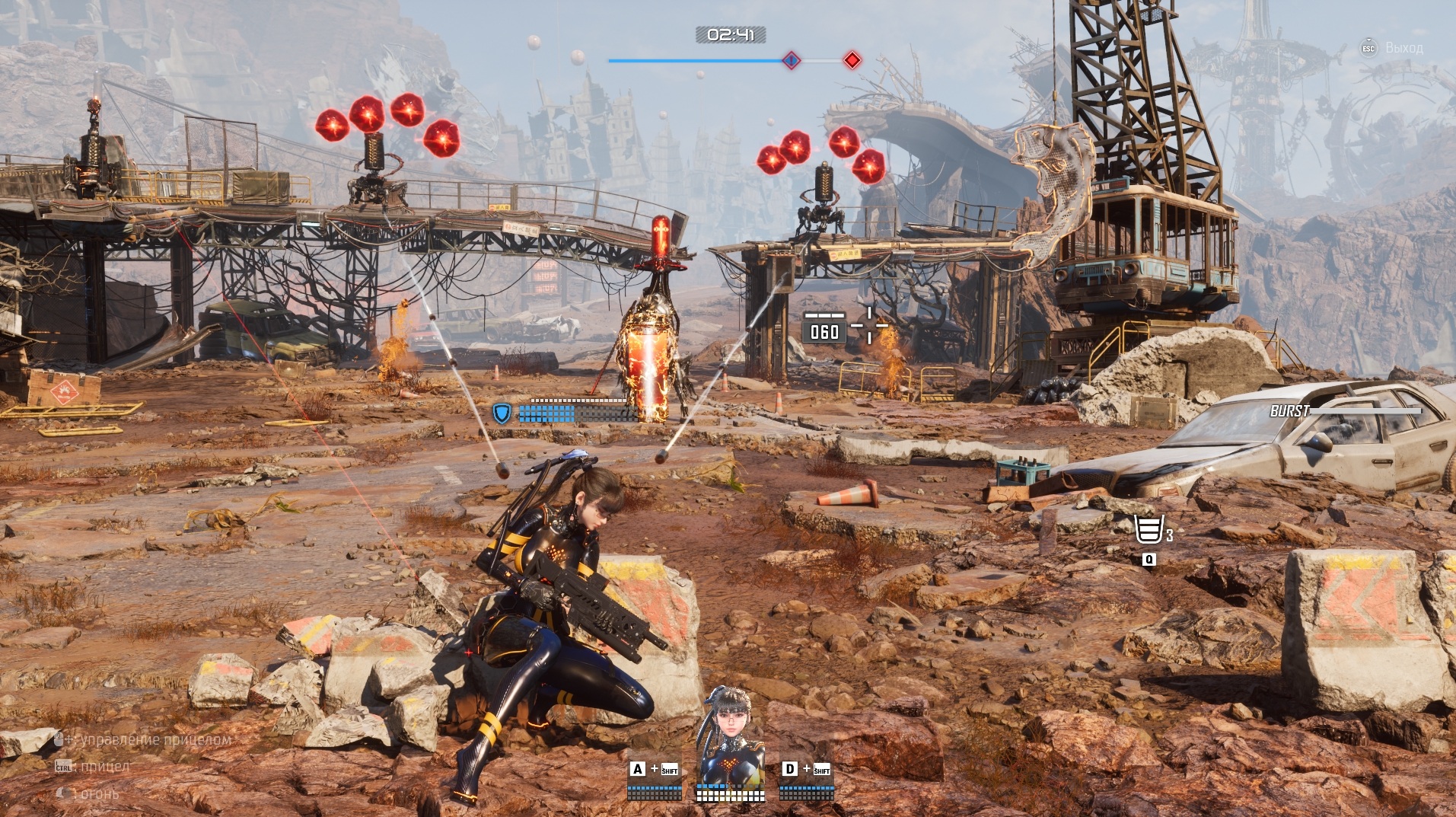 Обратите внимание на то, что, нанося урон монстрам во время испытания, Ева накапливает заряд так называемого бурста (Burst). Когда шкала заполнится на 100%, вы получите доступ к трем сильным навыкам: