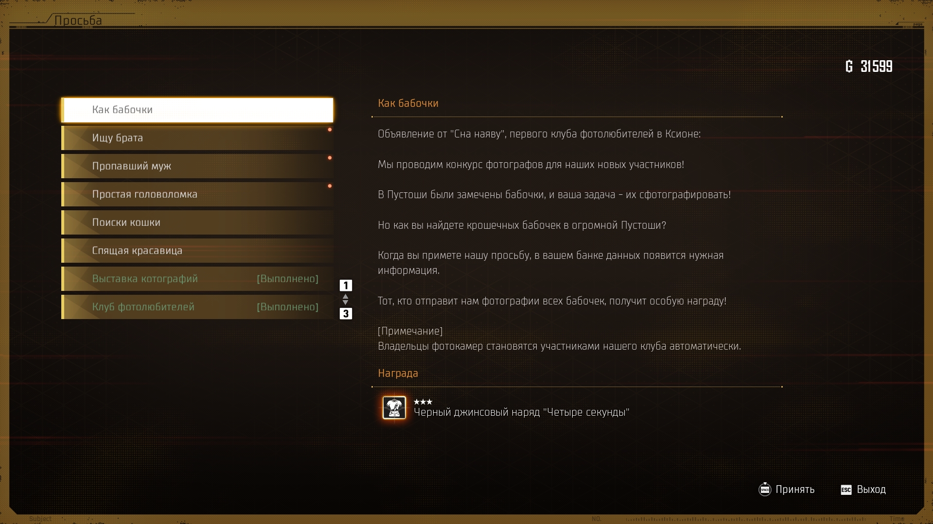 Квест «Как бабочки» становится доступным после того, как главная героиня получит фотокамеру для селфи, научится ею пользоваться и сфотографирует все граффити-котиков в Ксионе. Для разблокировки камеры придется завершить предварительное поручение «Клуб фотолюбителей». По ссылке ниже вы найдете подробный гайд, в котором рассказано о его прохождении и выполнении последующего задания «Выставка котографий».