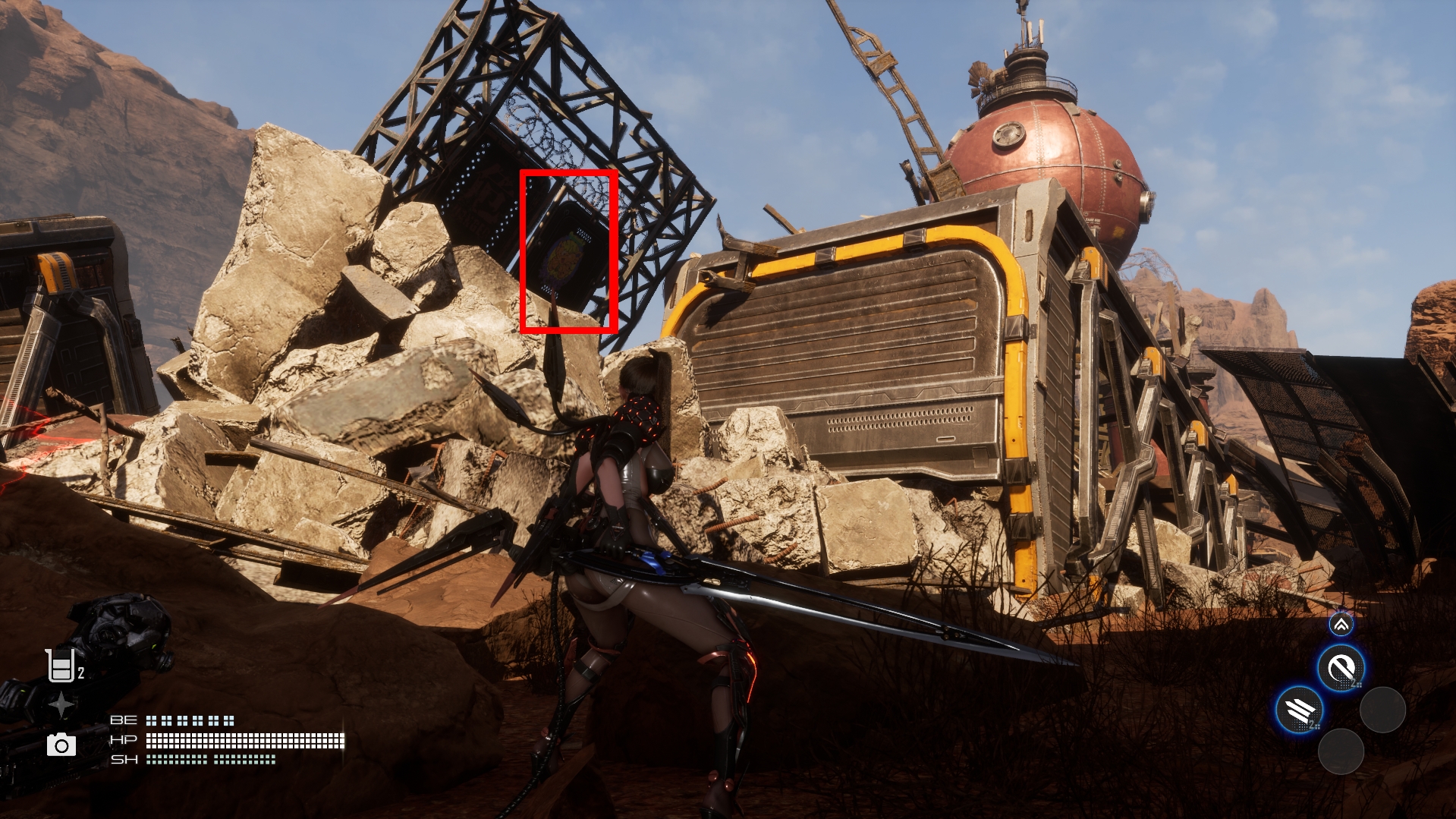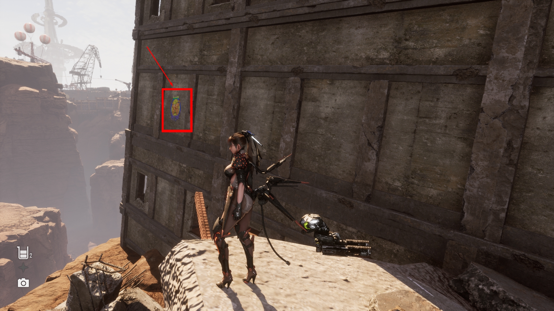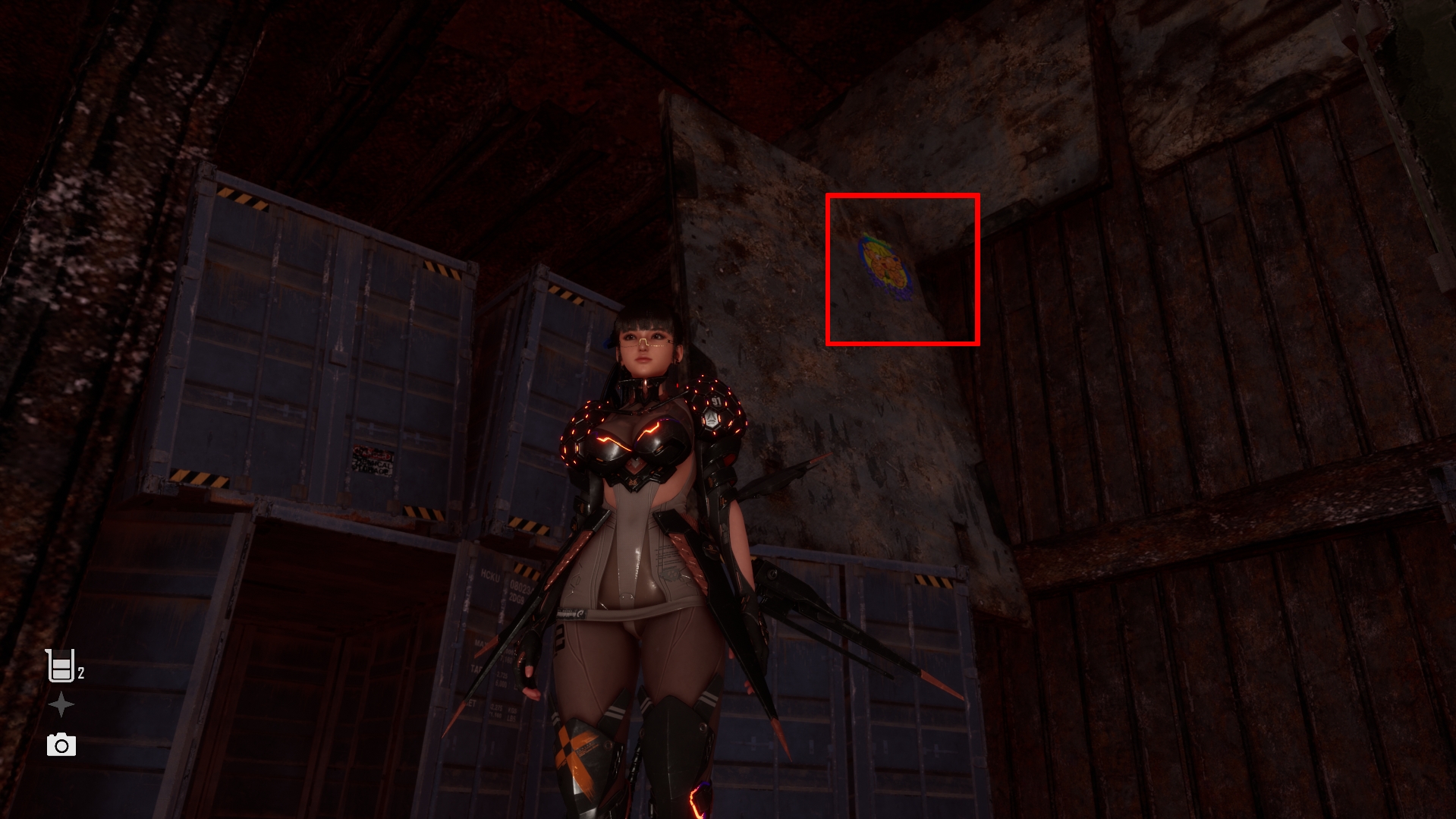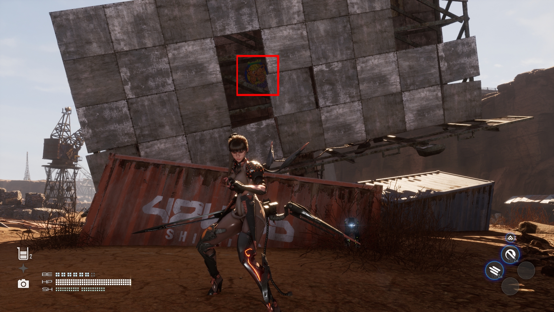 Находится внутри огромного ржавого корабля на юге от солнечной башни. Войдите внутрь судна и слева между грузовыми контейнерами найдите огромный металлический лист. Граффити нанесено на его верхний правый угол.