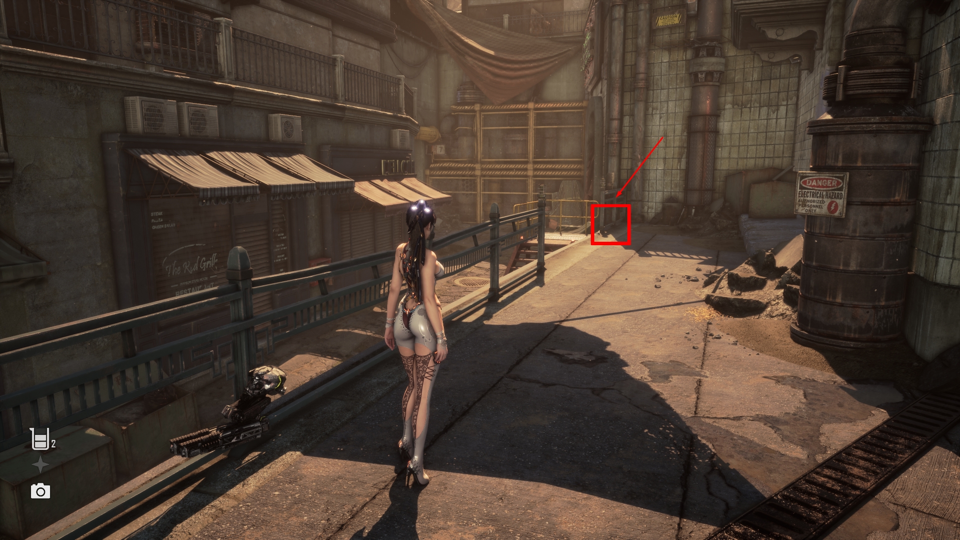 Последняя банка в Ксионе спрятана в крайне неожиданном месте. Отправляйтесь к главному входу в город (со стороны площадки с тетраподом) и дойдите до конца первого моста. Справа от него вы увидите трос. Воспользуйтесь им, чтобы спуститься ниже на скалу.