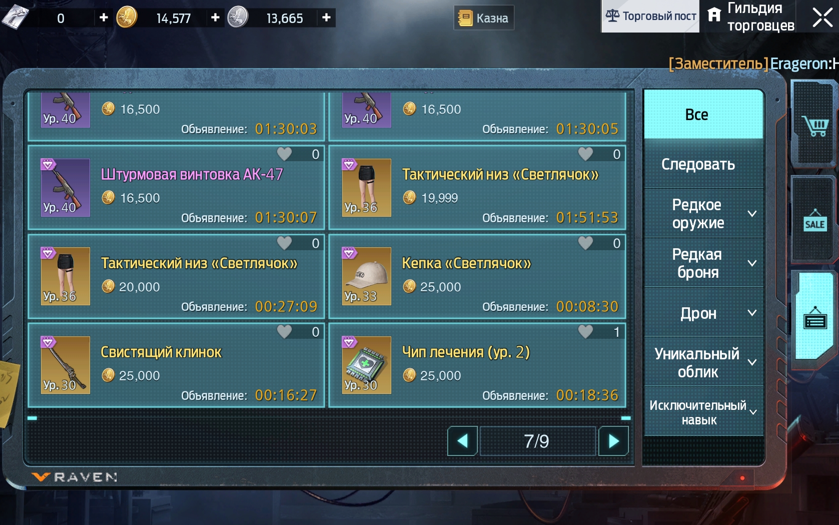 - Продажа ресурсов/предметов фиолетового или оранжевого качества на аукционе;