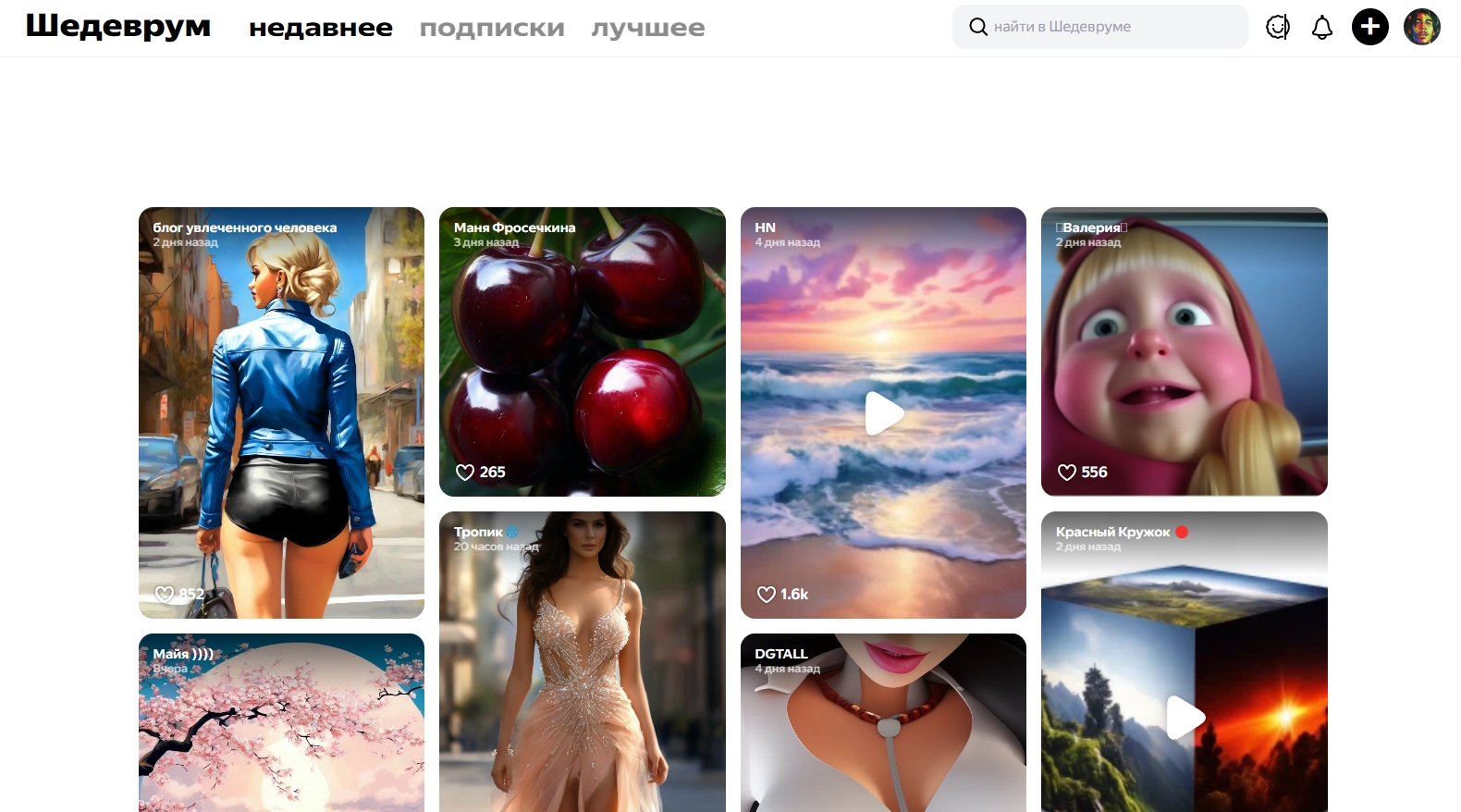 *Обратите внимание! В веб-версии Шедеврума нельзя создавать изображения / видео / текст. Для полноценной работы сервиса требуется мобильное приложение. На сайте вы можете только просматривать контент, созданный другими пользователями, делиться им и читать комментарии, оставленные к чужим работам.