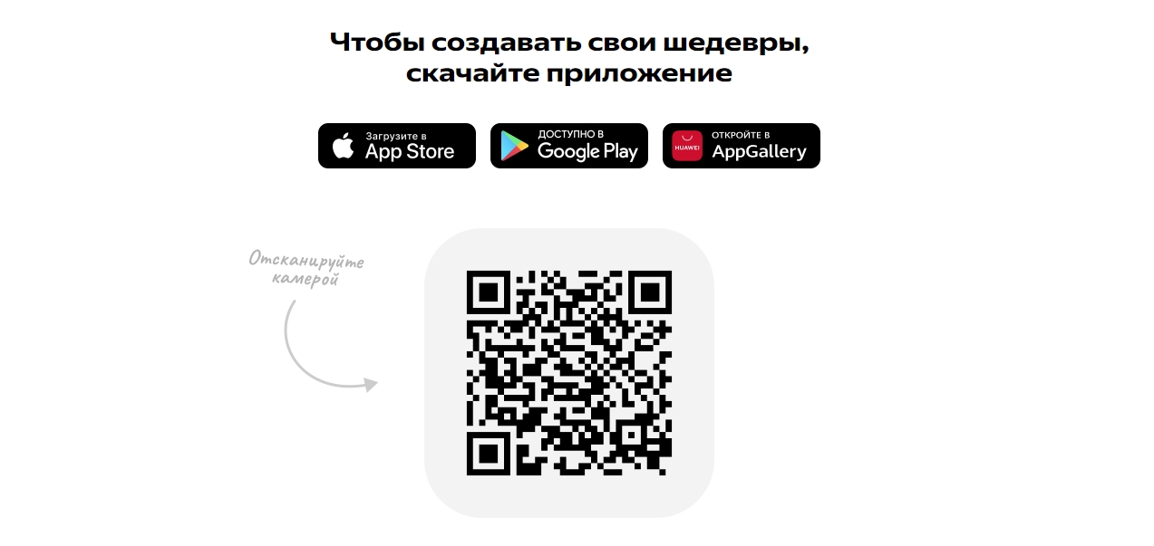 Также вы можете скачать приложение Шедеврум на свое мобильное устройство по QR-коду, который есть на официальном сайте сервиса. Перейдите по этой ссылке и справа вверху кликните по кнопке «Скачать».