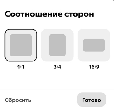 . В этом разделе можно настроить соотношение сторон картинки – 1:1, 3:4 или 16:9;