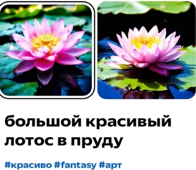 - Введите максимально подробный запрос, который должен отображать то, что вы хотите увидеть на картинке. Мы для пробы ввели запрос «Большой красивый лотос в пруду». В нем нет особых деталей, поэтому если вы хотите что-то конкретное, добавляйте уточнения.