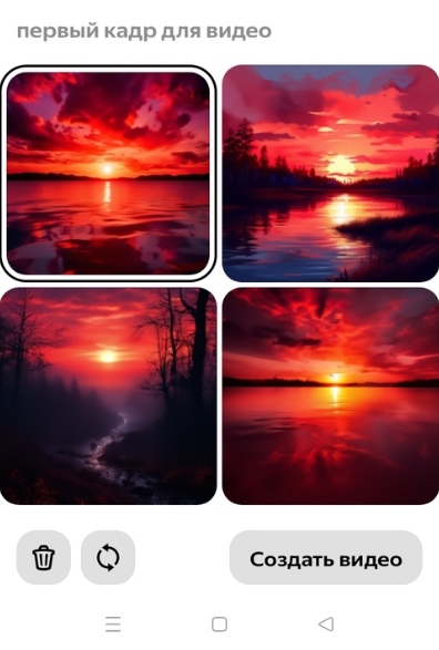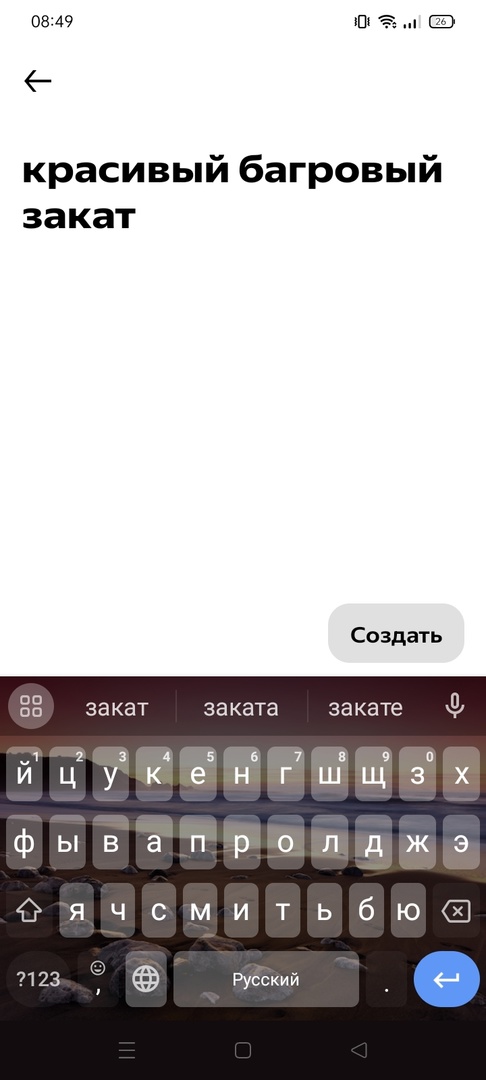 - Введите максимально подробный текстовый запрос. Мы попробовали это: «Красивый багровый закат»;