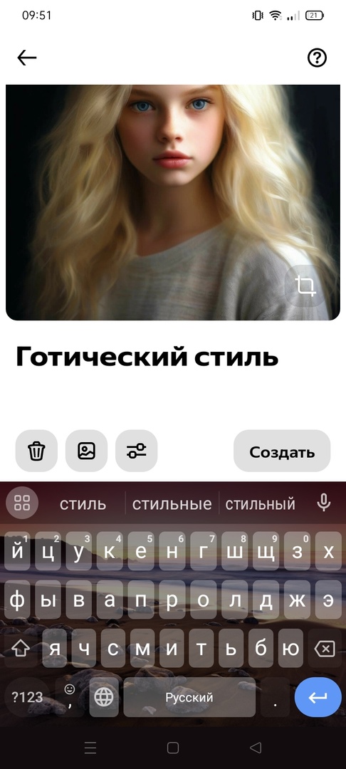 - Выберите изображение, которое хотите отредактировать, а затем введите текстовый запрос для подбора эффекта, к примеру «Готический стиль»;