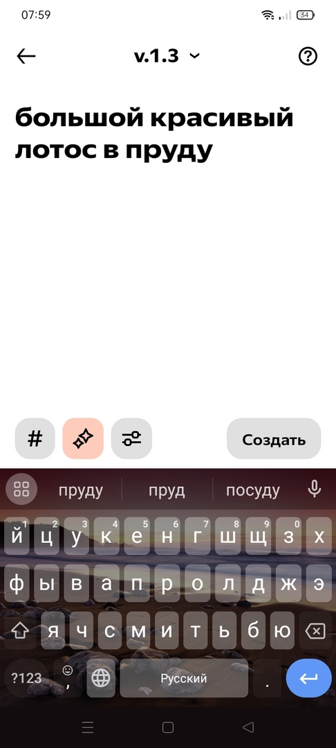 . Таким образом вы автоматически получите случайный запрос, который можно отредактировать. Нажимайте на этот значок до тех пор, пока система не подберет вам нужное описание иллюстрации;