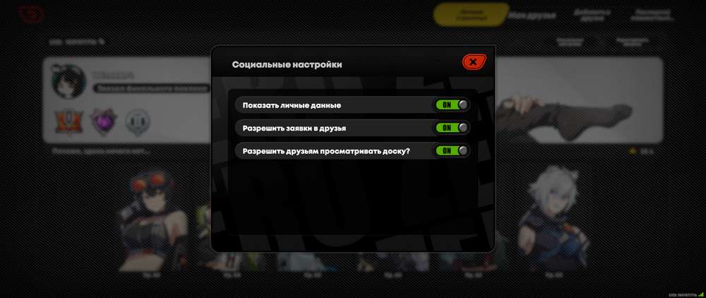 - Панель героев - в этом пункте можно выбрать, каких персонажей вы бы хотели выставить на обозрение в качестве демонстрации.