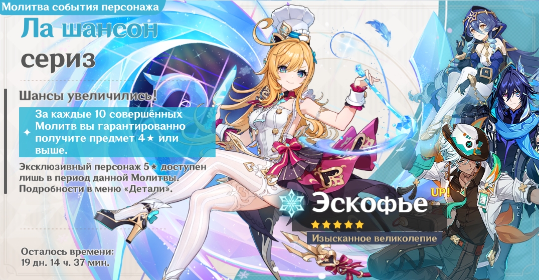 Где взять персонажа | С определенным шансом из молитвы события «Ла шансон сериз» |