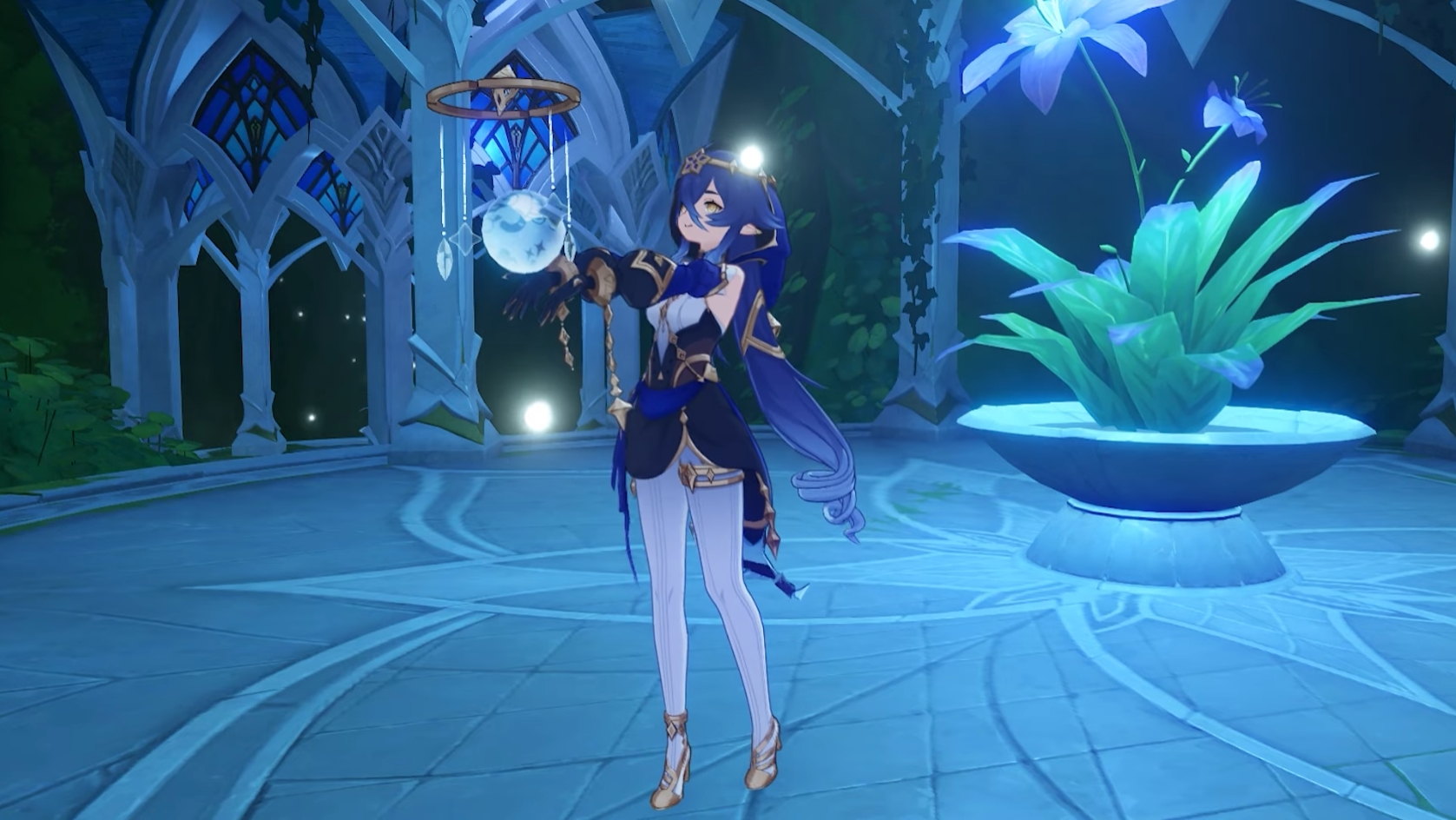 Лайла наносит слабый урон, но это не означает, что она бесполезная. Ее главная особенность заключается в создании прочного щита, который защитит вашу команду в боях с элитными монстрами и боссами. Кроме того, благодаря Ночным звездам вы сможете запускать различные реакции стихий, поскольку они автоматически атакуют противников и наносят урон от Крио.
