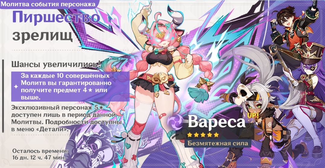 Где взять персонажа | С определенным шансом из молитвы события «Пиршество зрелищ» |