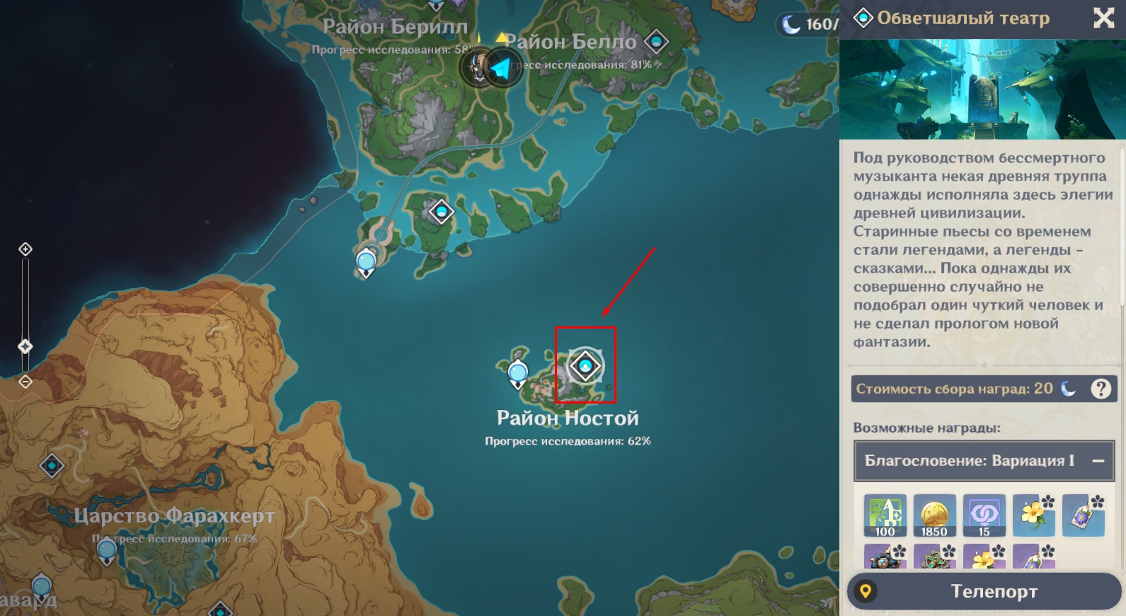 1. Где находится Обветшалый театр в Genshin Impact?