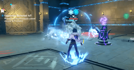 Чтобы сделать все быстро и правильно, используйте против слаймов атаки героев стихии Пиро. На втором этапе вы встретитесь с 7 крио-монстрами – хиличурлы-стрелки, слаймы и маг Бездны. Чтобы завершить второе испытание, вам необходимо убить всех монстров и не попасть под заморозку более 5 раз. Избежать реакции «Заморозка» можно, если атаковать врагов на расстоянии.