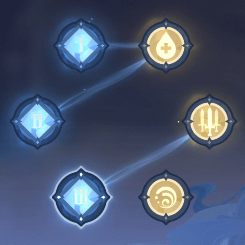 - При прохождении обеих половин испытания в вашем отряде должны быть герои стихии Гидро. Они помогут быстро уничтожить Пиро щиты на противниках. Если у вас нет персонажей стихии Гидро, кроме Барбары, берите Диону или любого другого целителя.