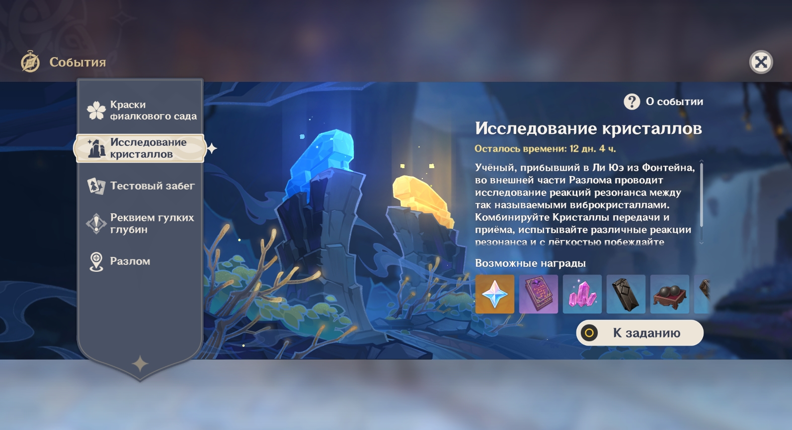 - 2. Общая информация об испытаниях ивента «Исследование кристаллов» в Genshin Impact