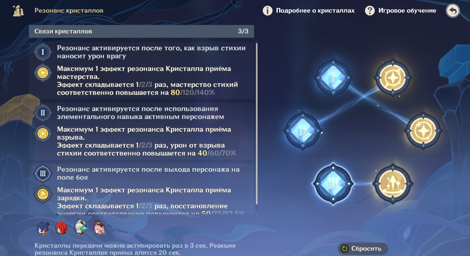- Не забывайте, что при активации эффектов резонанса кристаллов накапливается Сила резонанса, повышающая критический урон.