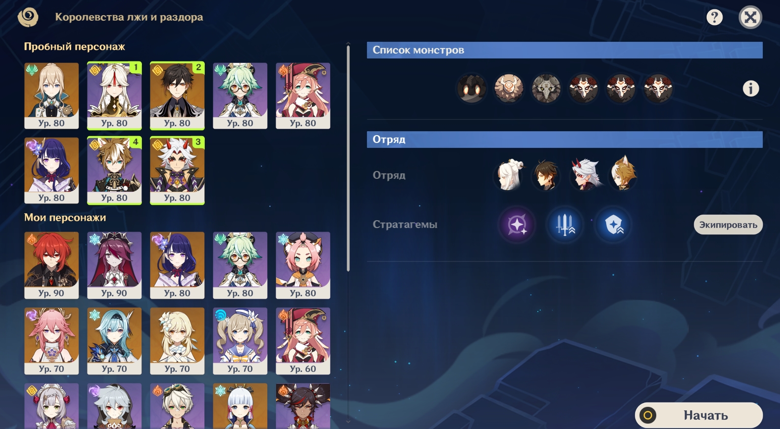 - Перед тем, как войти в испытание, ознакомьтесь со списком противников, с которыми вам предстоит сразиться. У каждого игрока свой набор врагов.