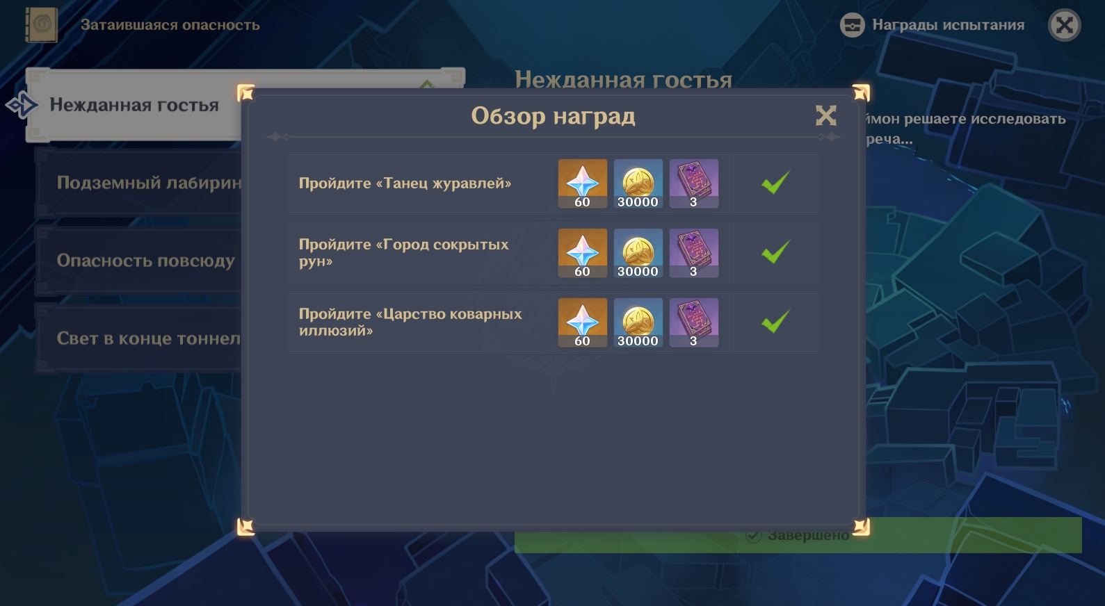 3. Прохождение всех квестов серии «Опасная тропа» в Genshin Impact