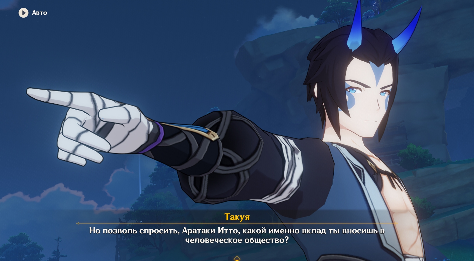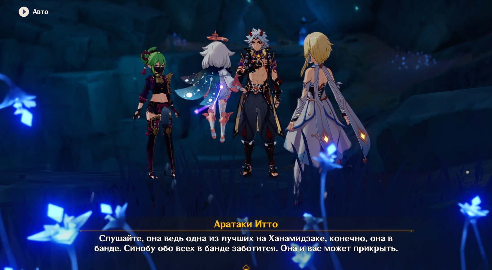 - После диалога с бабушкой Они и просмотра концовки легенды о Синем и Багровом они 1 глава заданий легенд Аратаки Итто будет завершена.