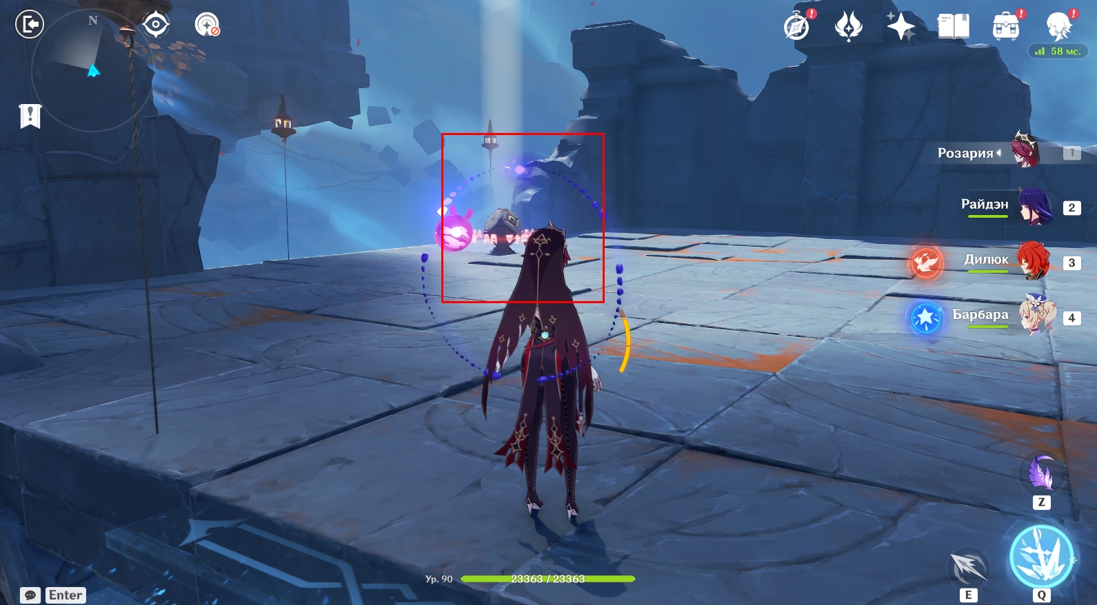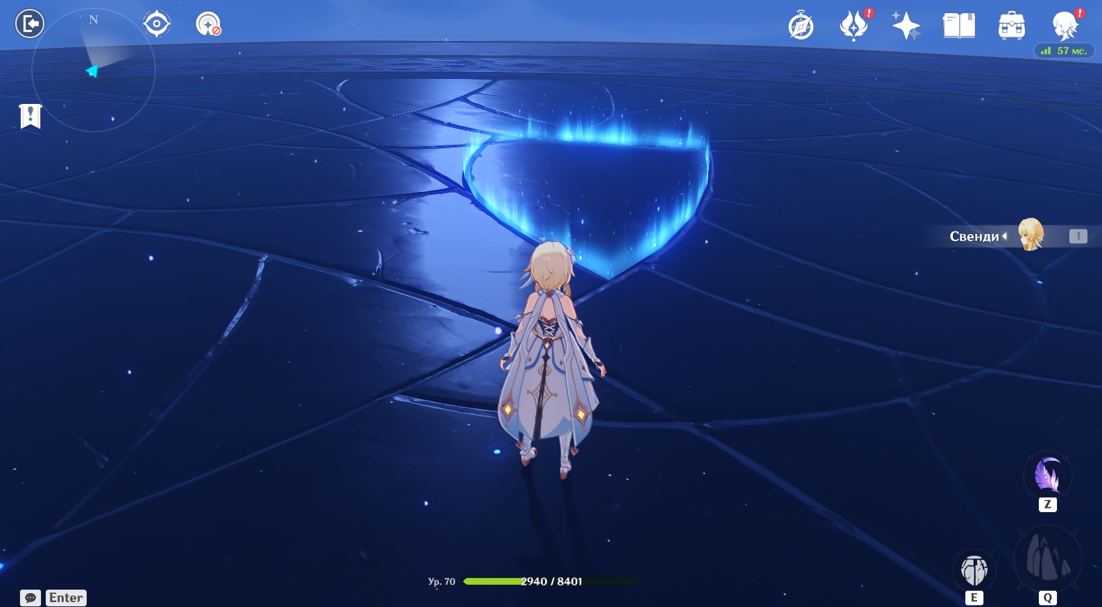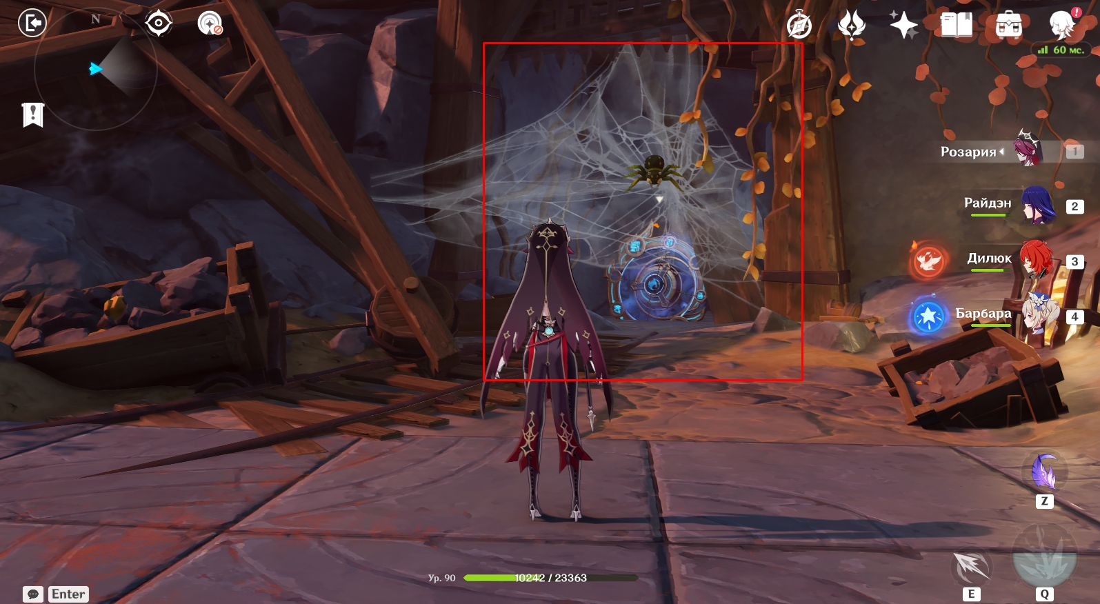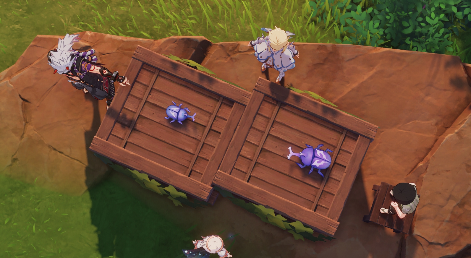 - Узнав, что представители банды Аратаки делают в Разломе, отправляйтесь в центр пещеры под колонну. Там еще раз поговорите с Янь Фэй. Во время кат-сцены вас познакомят с Е Лань. Во время конфликта между Е Лань и Итто земля обвалится и вы упадете на дно Разлома.