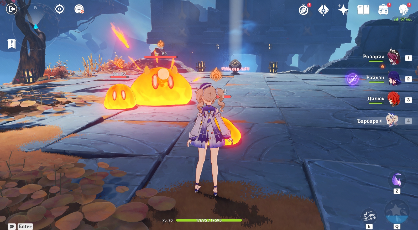 - Победите трех пиро-слаймов и взаимодействуйте с механизмом на краю 1 платформы.
