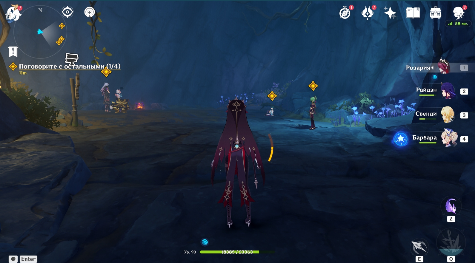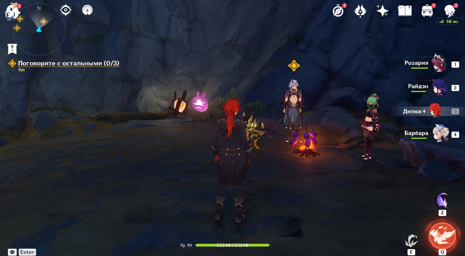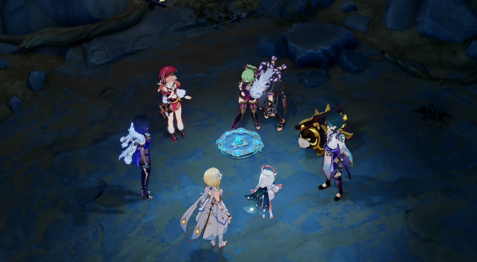 - Телепортируйтесь на запад подземной локации Разлома и встретьтесь там с Янь Фэй, Итто и Куки Синобу.
