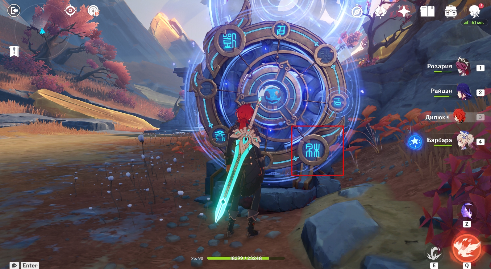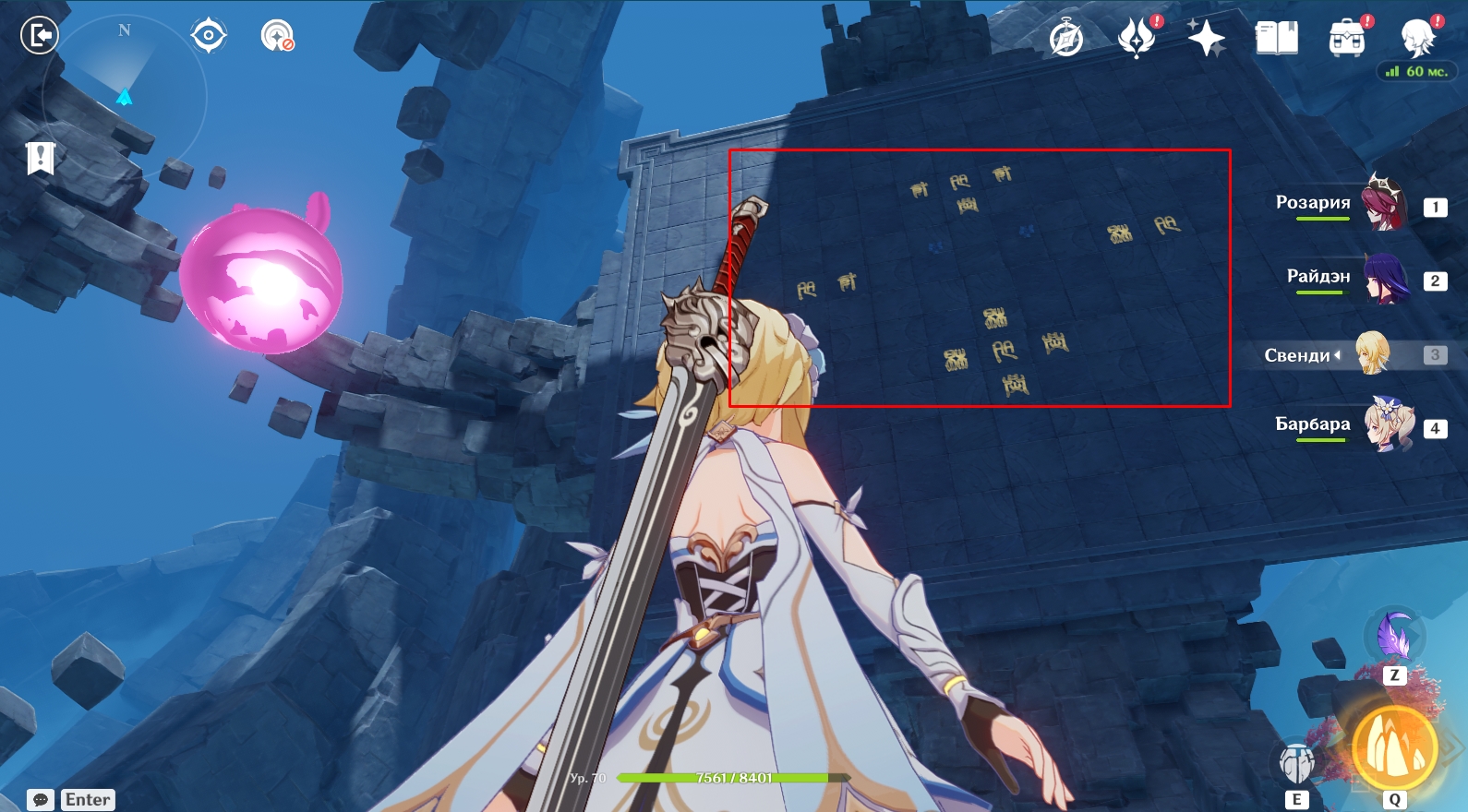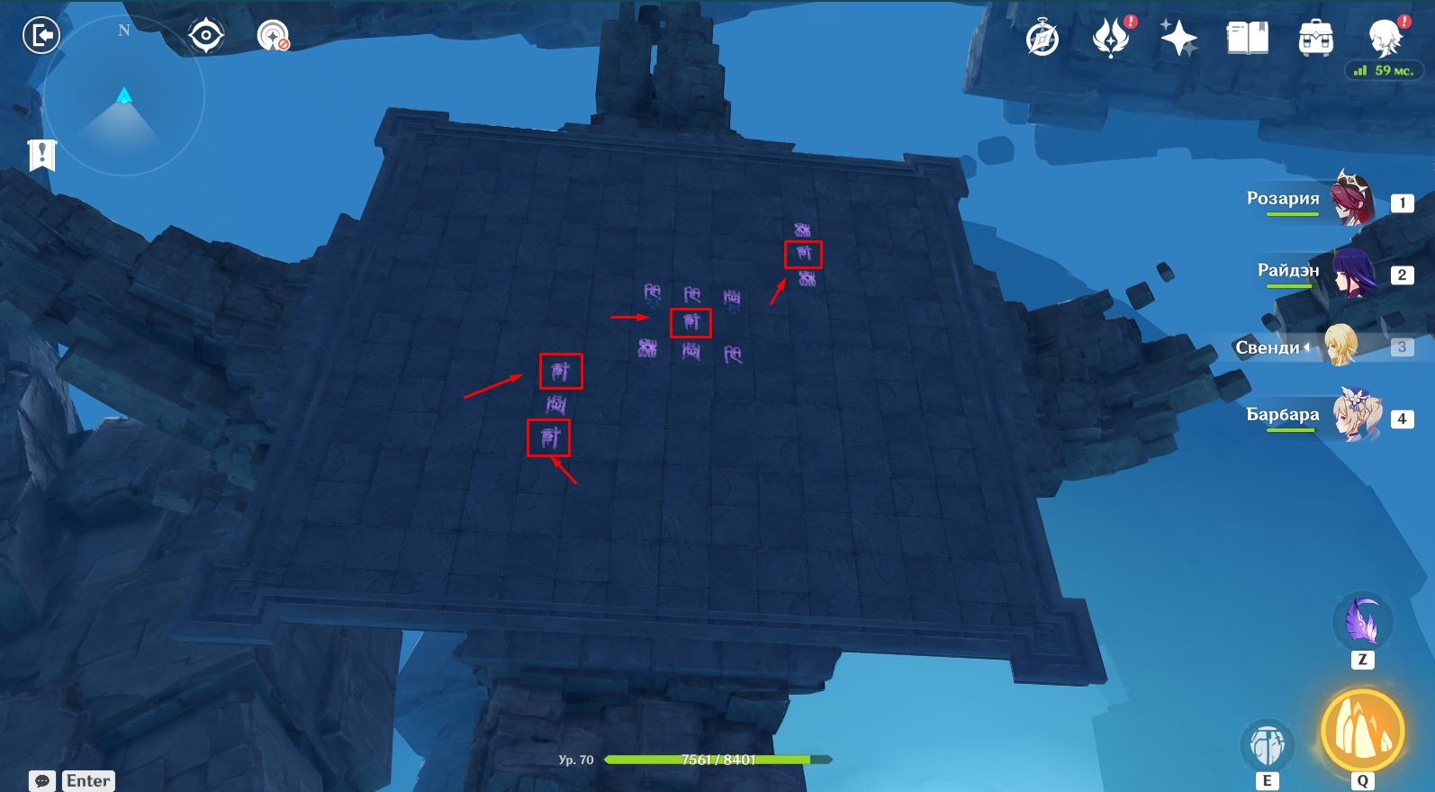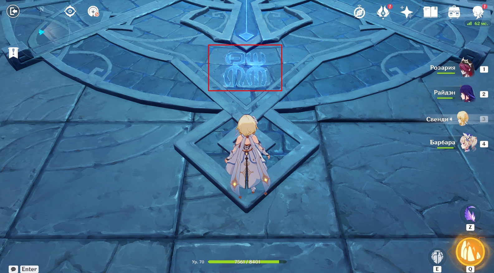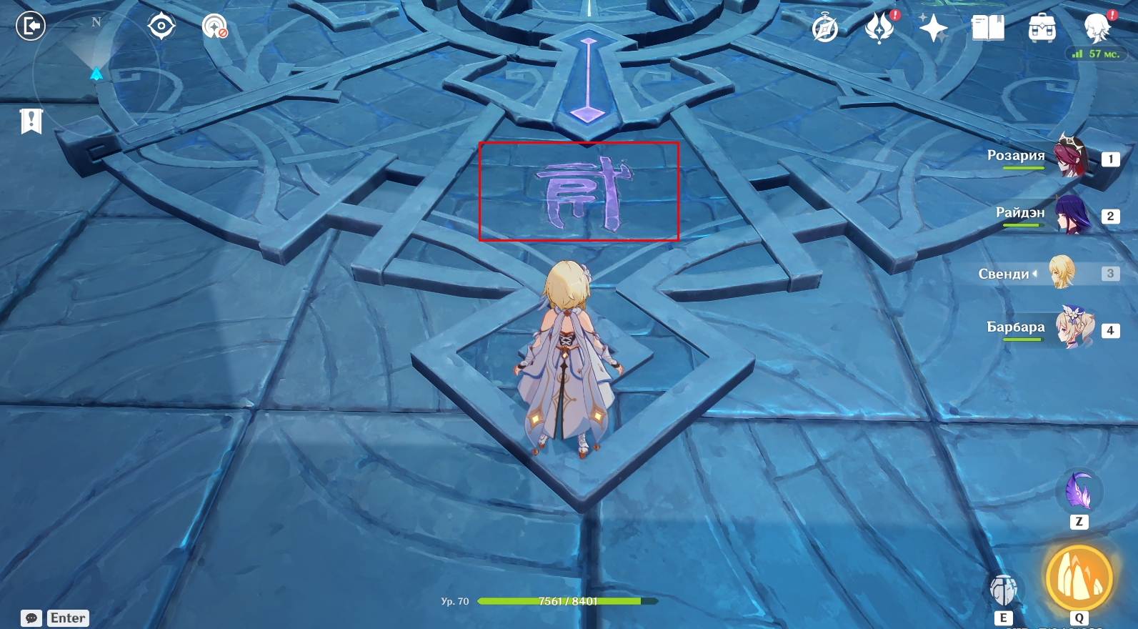 - Вам нужно переместиться на каждую из 4 боковых площадок с помощью круглых порталов (находятся на краю площадок) и активировать конкретные символы.
