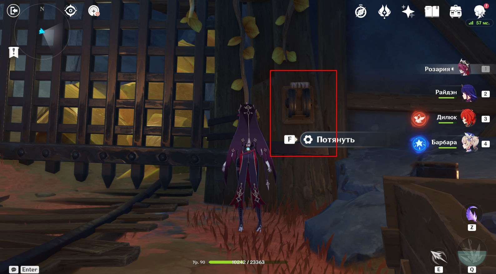 - Убейте первую группу монстров и доберитесь до механизма на краю комнаты. Взаимодействуйте с ним, чтобы повернуть платформу и пройти дальше.