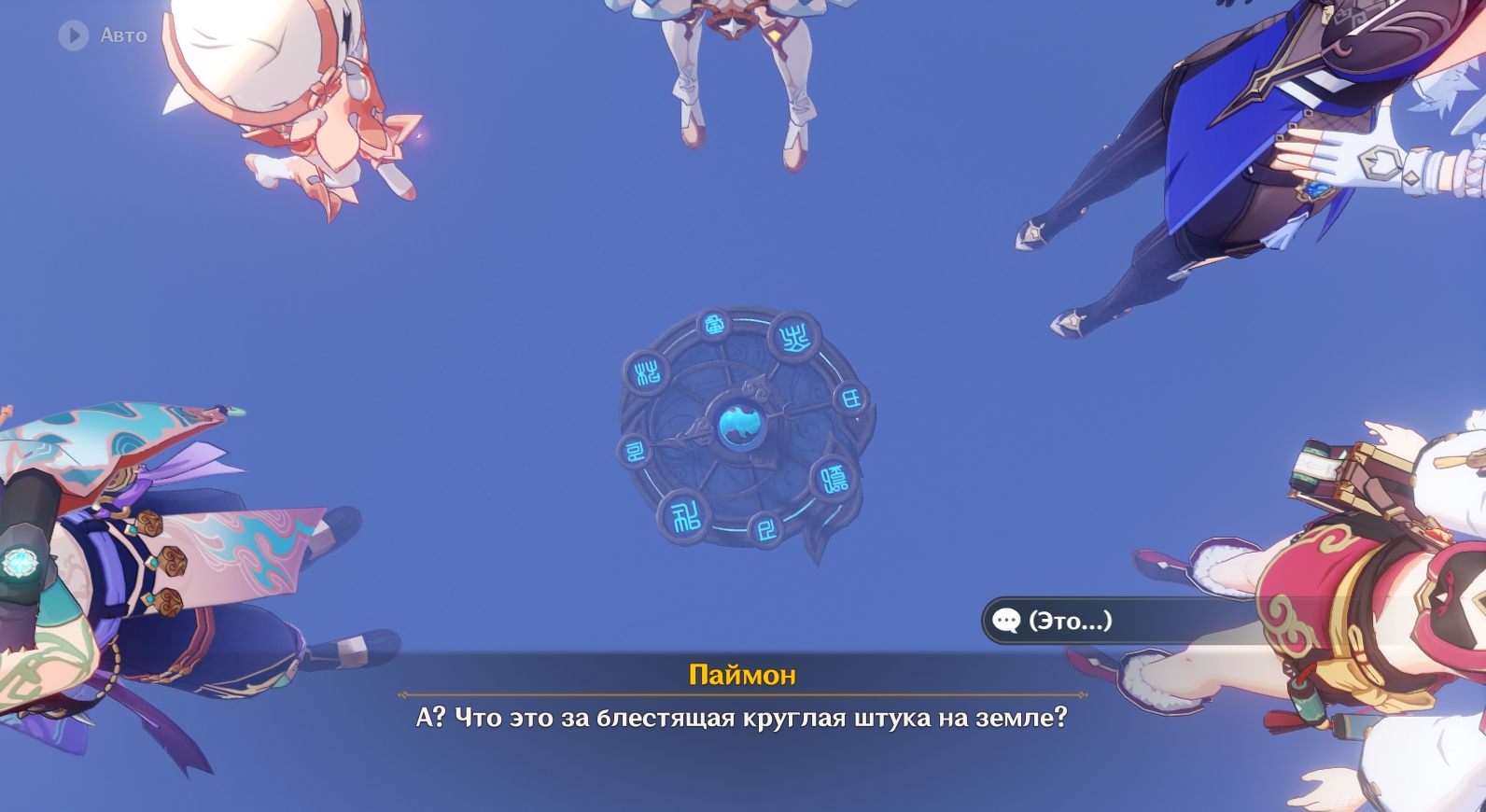 - Идите через 2 платформу к 3 платформе с хиличурлами. Убейте монстров и используйте механизм три раза. После вернитесь на 1 платформу и активируйте механизм там.