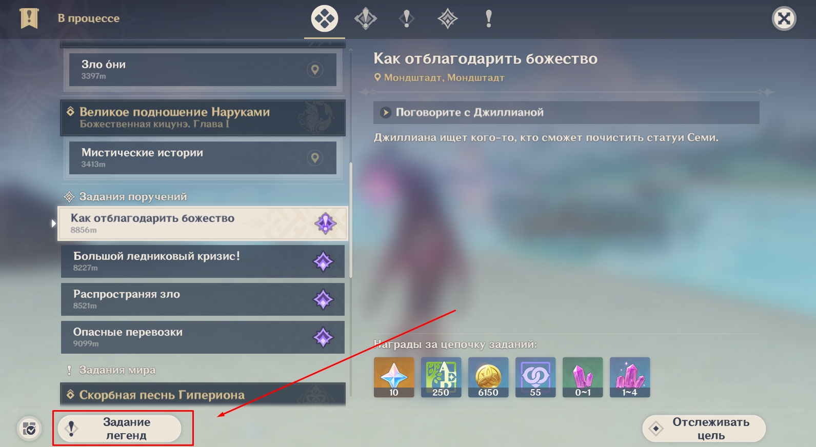 Важно! Чтобы разблокировать задания легенд Итто и Райдэн, у вас должны быть Ключи легенд. 1 ключ выдается за завершение 8 ежедневных поручений. Меню выбора заданий легенд находится тут – Журнал заданий > Задание легенд (кнопка слева внизу).