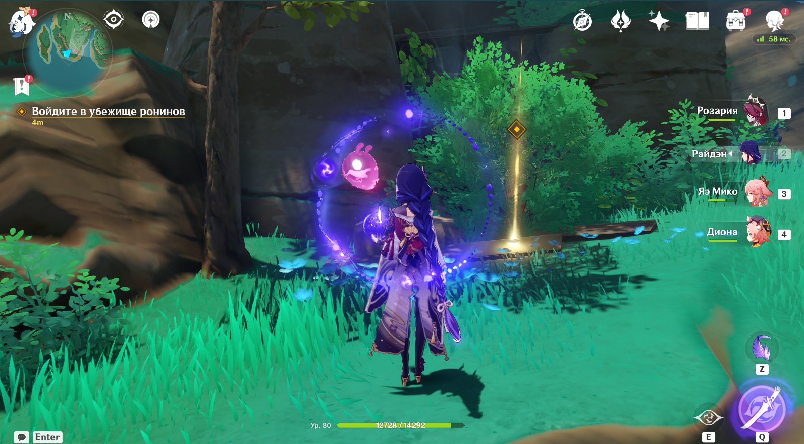 - Дальше вам нужно посетить все отмеченные Катериной места на карте Инадзумы и разобраться с Гончими Разрыва. В самый опасный для Путешественника момент появится Эи и поможет ему. Поговорите с ней