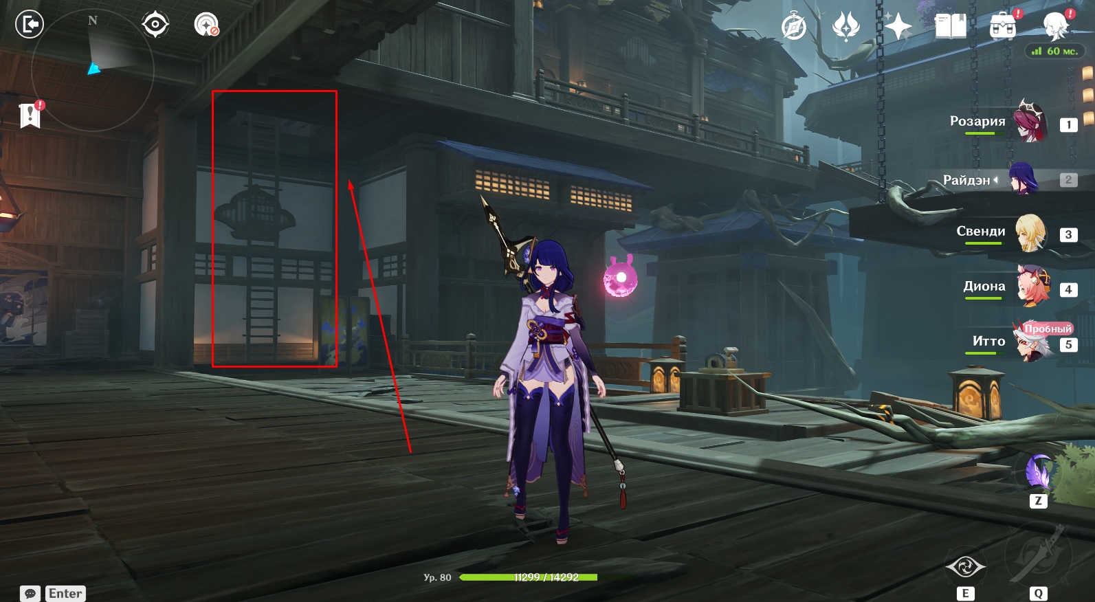 - Идите к Е Лань, которая стоит напротив странного портала неподалеку, и посмотрите кат-сцену. После беседы с Куки, Итто и другими персонажами первая часть Промежуточной главы «Опасная тропа» будет завершена.