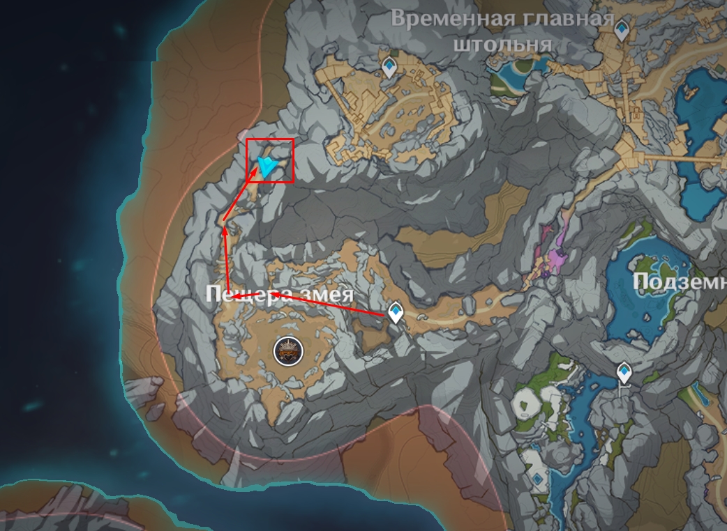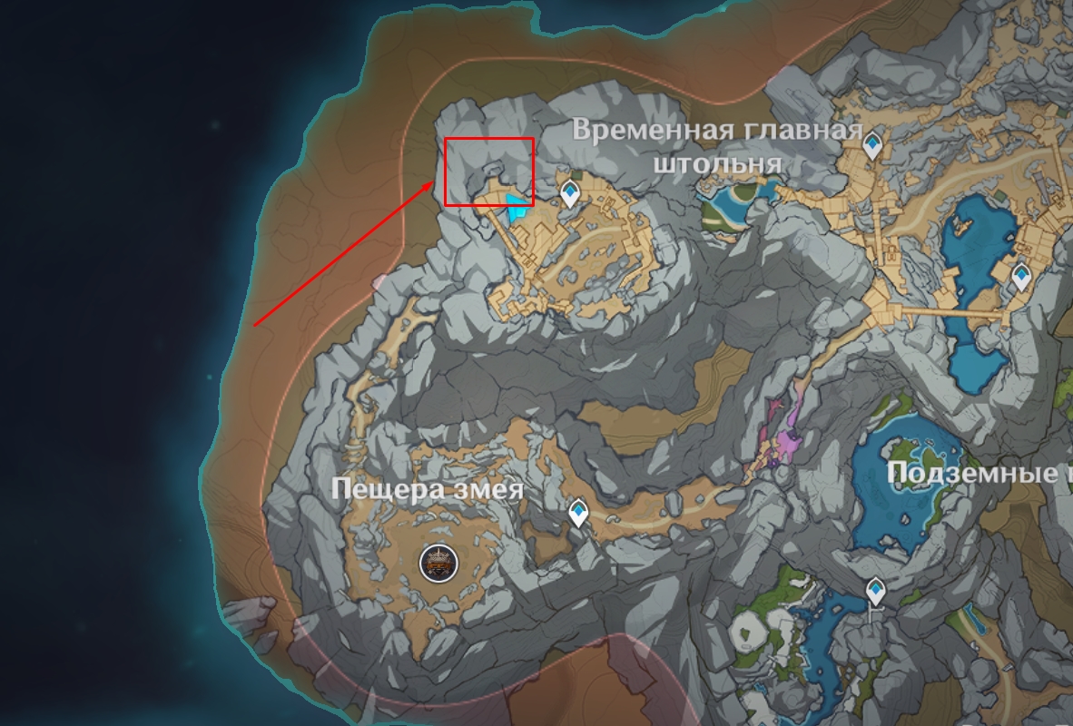 - Отправляйтесь в область, где находится босс Змей руин (юго-западная часть карты под Временной главной штольней);