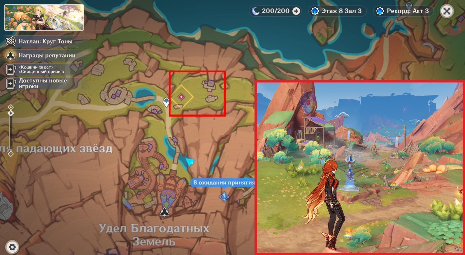 Первое задание сюжетной линии Удела Благодатных Земель называется «Пылающая земля изобилия». Приступить к его прохождению могут все игроки, которые достигли 40 ранга приключений (28 до выхода версии 6.0) и добрались до Пиро региона.