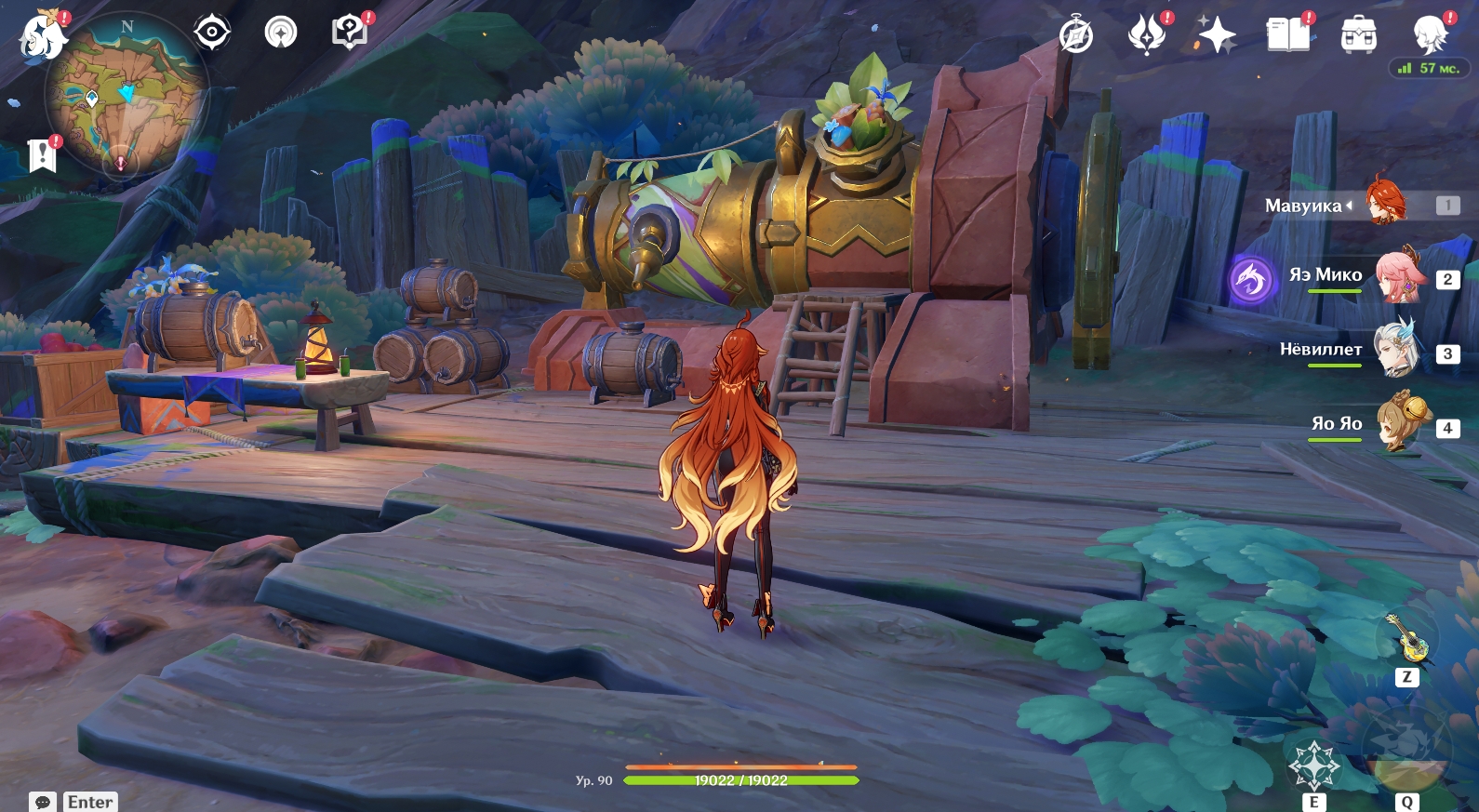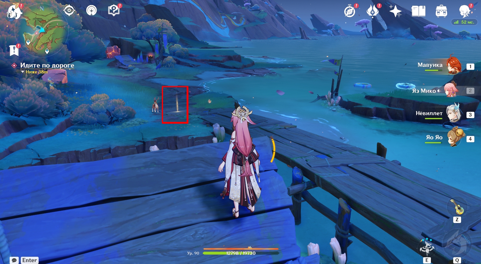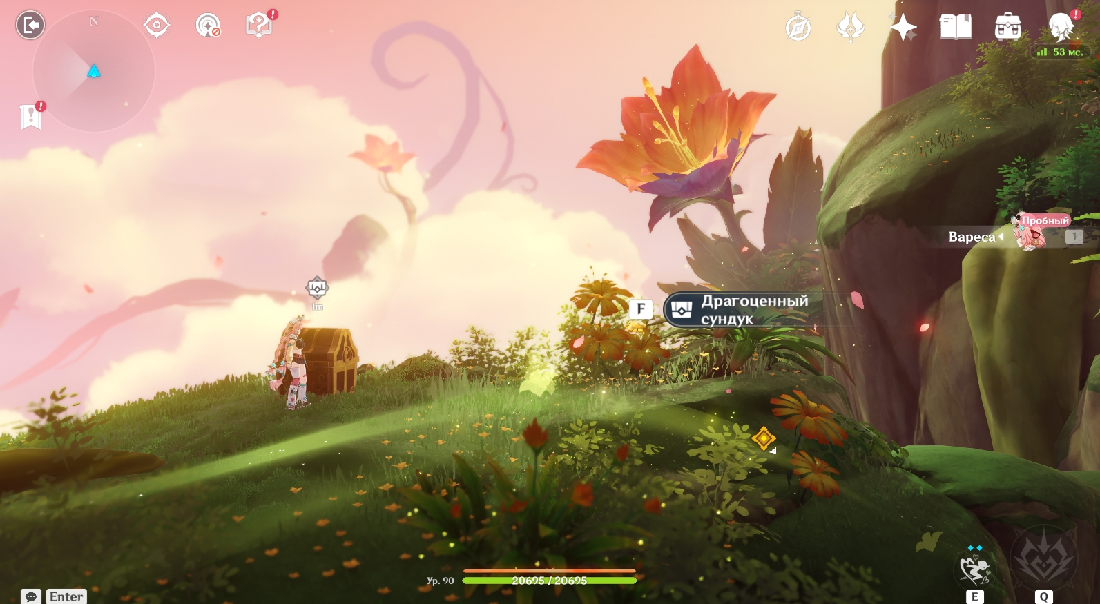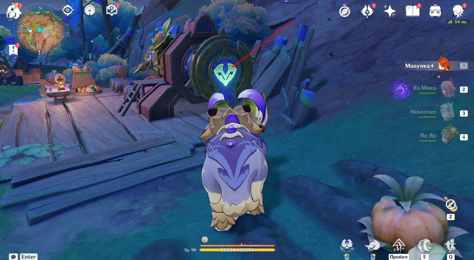 Добравшись до места, где парит Статуя дракона тайного источника, запрыгните на нее, чтобы добраться до следующей части локации. Когда вы спрыгните с механического существа, запустится кат-сцена, в которой покажут, как Вареса, Путешественница и Паймон догнали Грибного владыку и все-таки узнали его тайну. Однако ему в этот раз ему удастся тоже ускользнуть. Заберите награду из драгоценного сундука и продолжите преследовать существо.