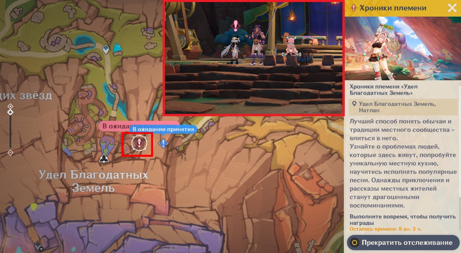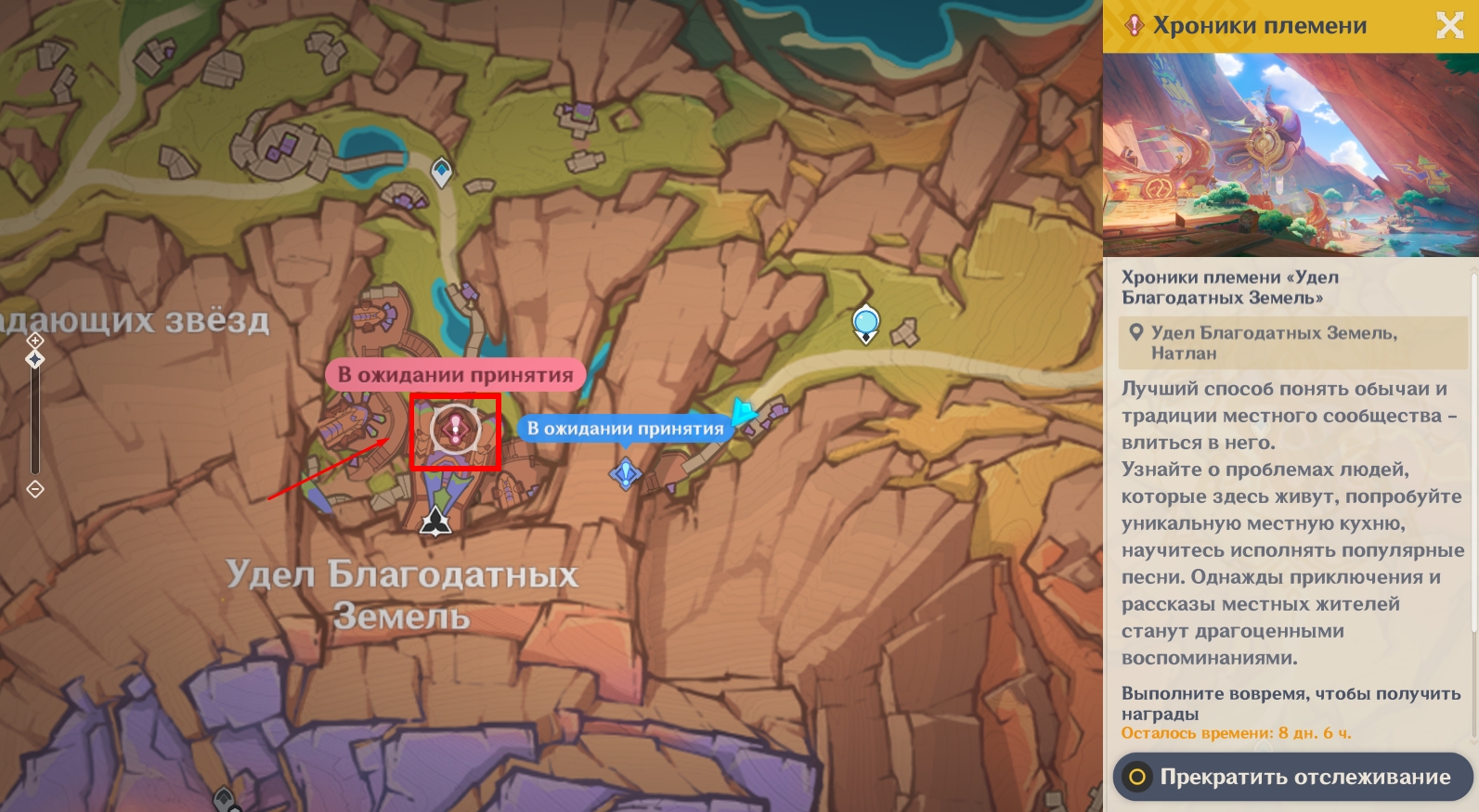 Обратите внимание на то, что квесты из категории «Хроники племен» становятся доступными только после того, как вы разблокируете систему репутации Натлана. Для этого вам нужно завершить 1 Главу 5 Тома заданий Архонтов «Цветы под палящим солнцем».