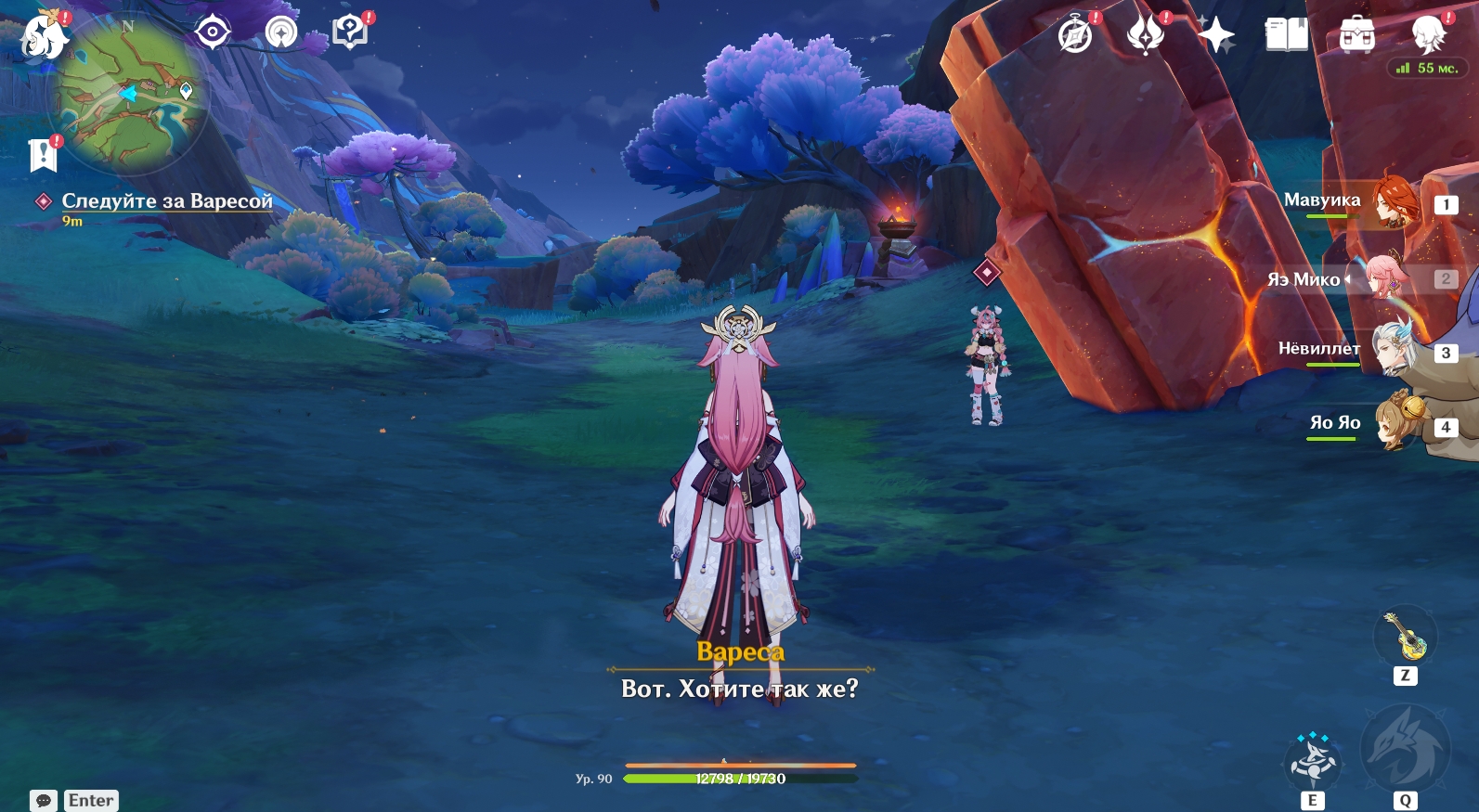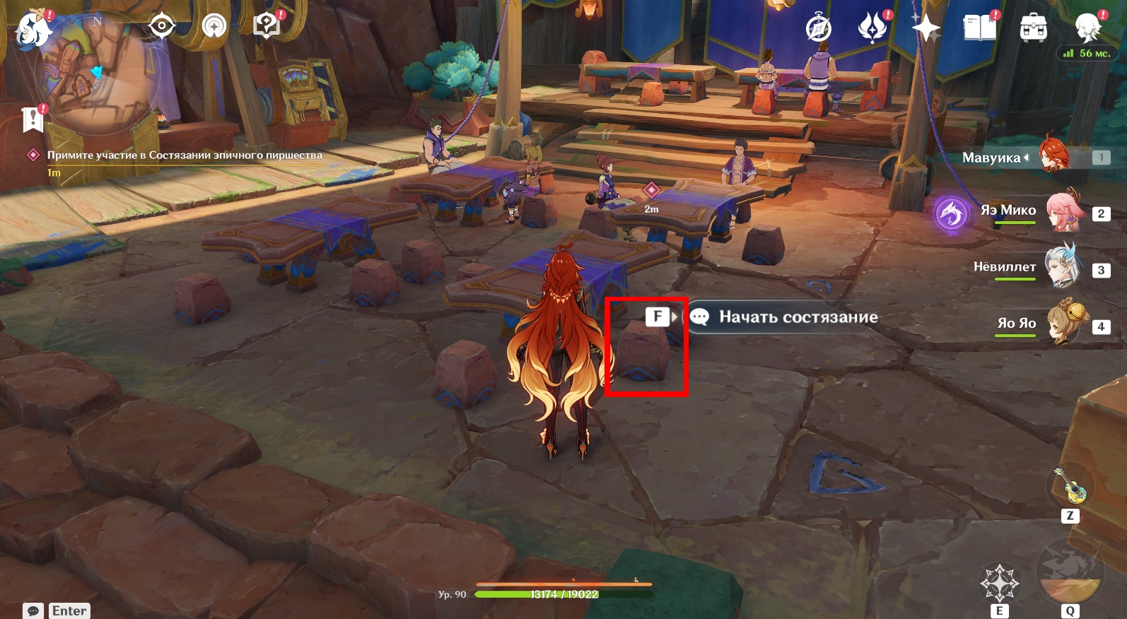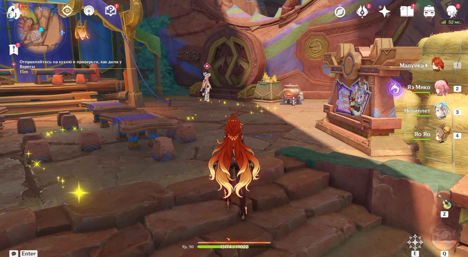 Закончив сбор, поговорите с Варесой еще раз. Она угостит героиню собственноручно приготовленным блюдом и немного расскажет о предстоящем Состязании эпичного пиршества, для которого дядя Аттоли подготавливает особое меню. Под конец беседы девушка пригласит Путешественницу и Паймон поучаствовать в мероприятии и, конечно же, они не смогут отказаться.