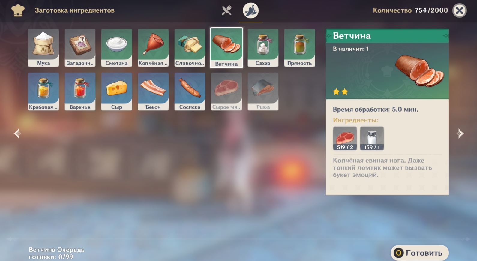 Однако, есть нюансы. Обработка кулинарных ингредиентов длится очень долго. Тут уж остается лишь выбирать, что для вас более ценно: время или деньги. К примеру, для обработки одной единицы муки придется потратить минуту, а значит, что для приготовления еды по рецепту, включающего в себя 3 ед. муки, понадобится ждать до завершения процесса 3 минуты. Как мы уже говорили выше, намного проще позаботиться о запуске обработки нужных ингредиентов заранее.