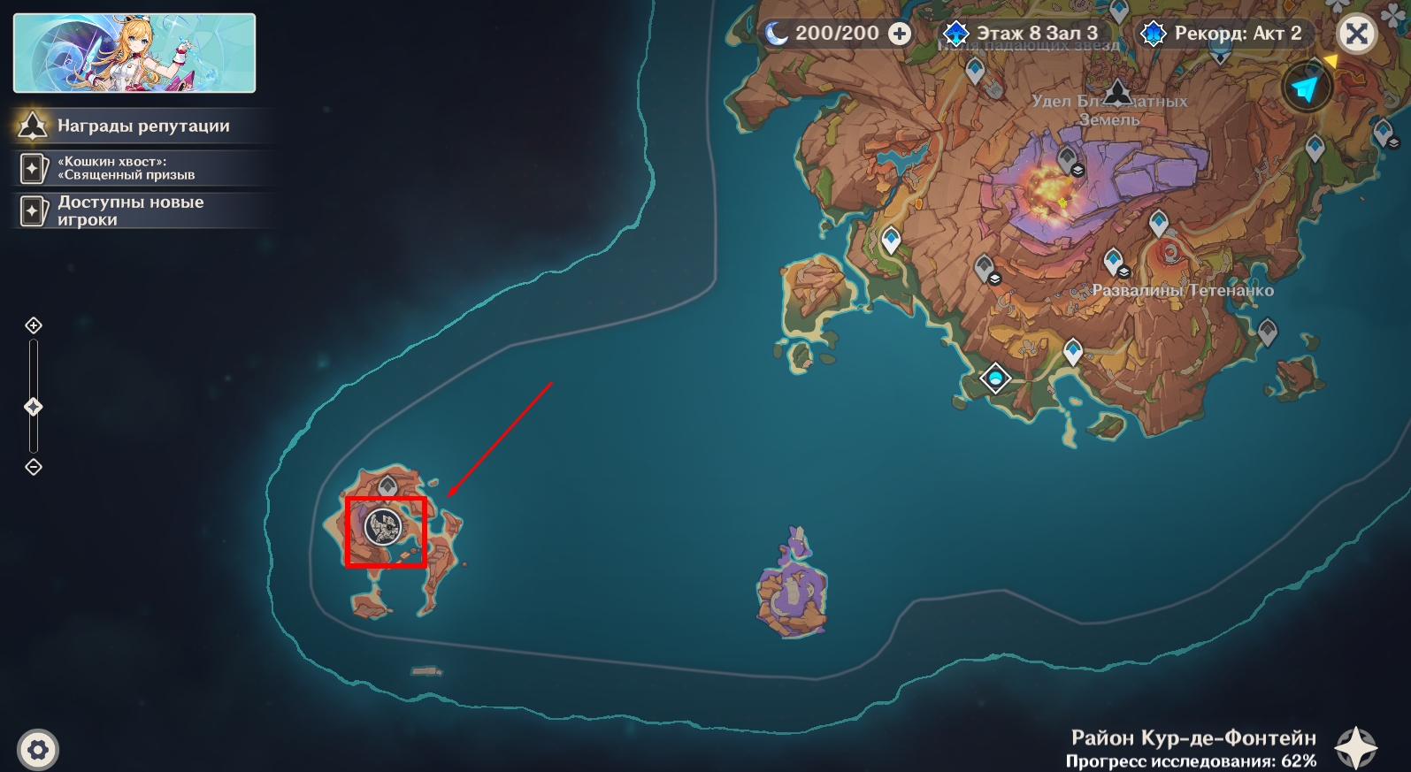 - Превратитесь в завриана и плывите к указанному острову, находящемуся у края карты.