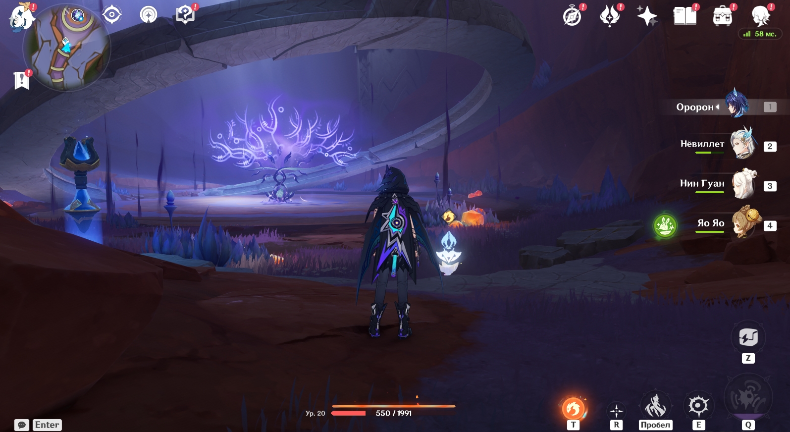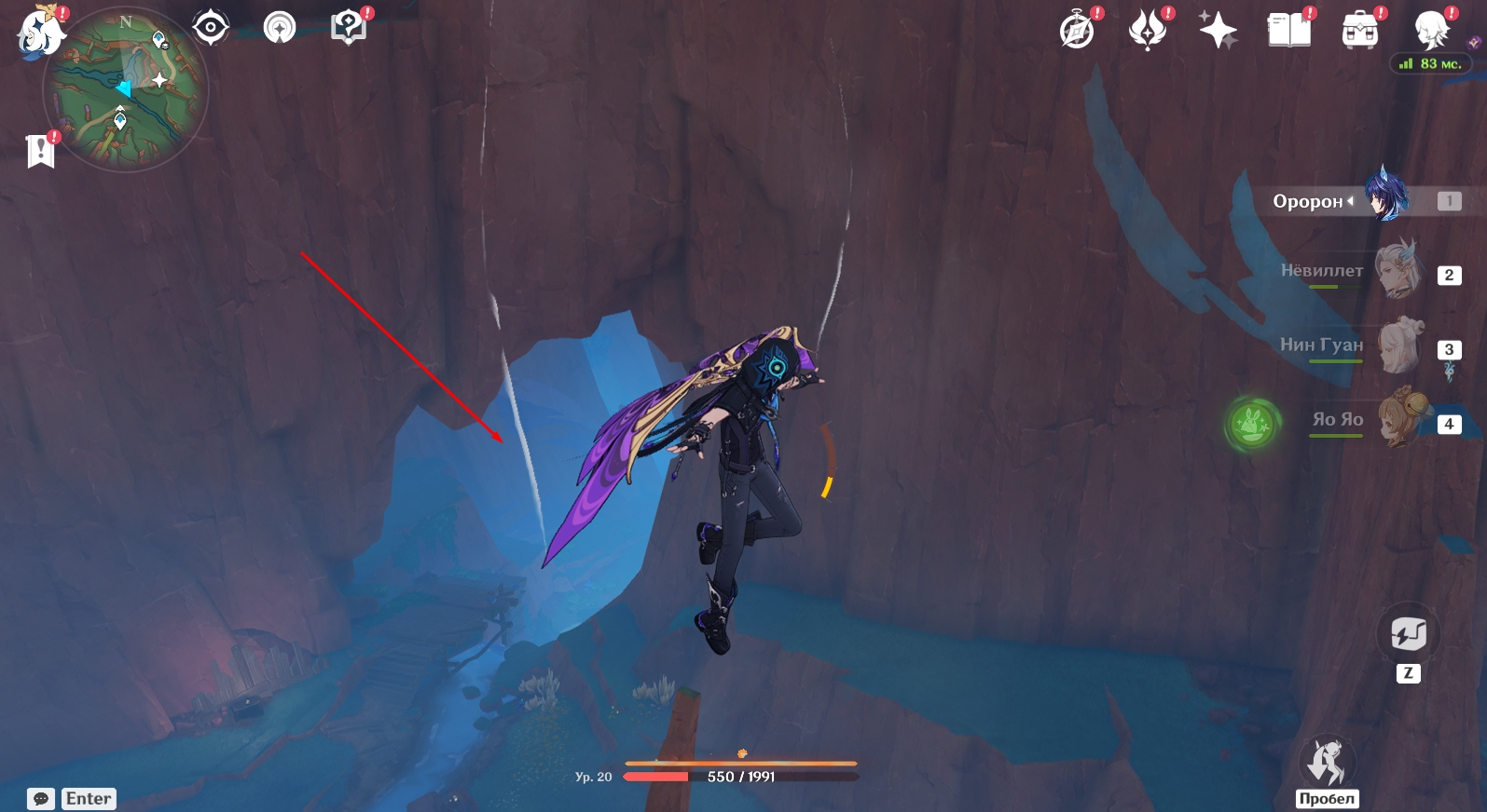 - Заряжает взрыв, наносящий Анемо и Крио урон в большой области. Если не выбежать из зоны АОЕ, герой получит 15 стаков «Разложения».