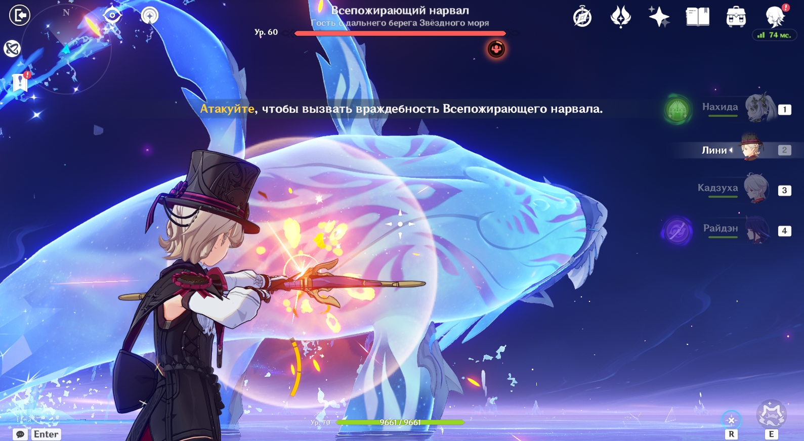 Мы рекомендуем взять в команду для прохождения Тени другого мира персонажей, использующих лук в качестве оружия. Атаки на расстоянии смогут ускорить накопление заряда ярости Всепожирающего нарвала на первой фазе боя.