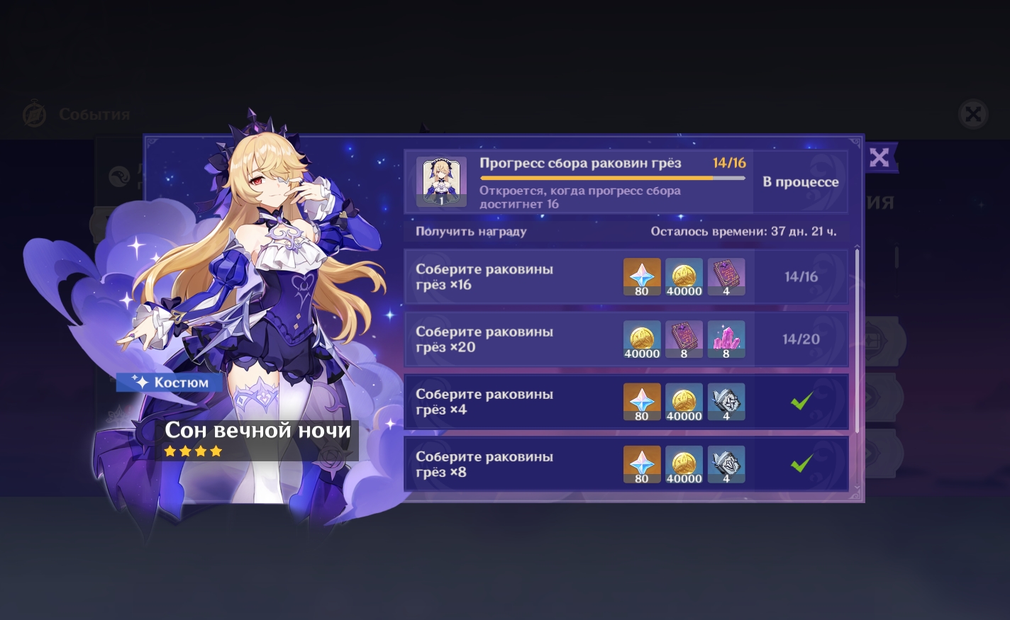 Фишль можно получить в обмен на 2400 Перламутровых раковин. Их выдают в качестве награды за зачистку подземелий Призрачного царства во время события «Летнее морское приключение». О том, как пройти все испытания, мы рассказали в соответствующем разделе этой статьи. Накопив достаточно Перламутровых раковин, откройте баннер события «Летнее морское приключение» и кликните по значку «Приглашение принцессы».