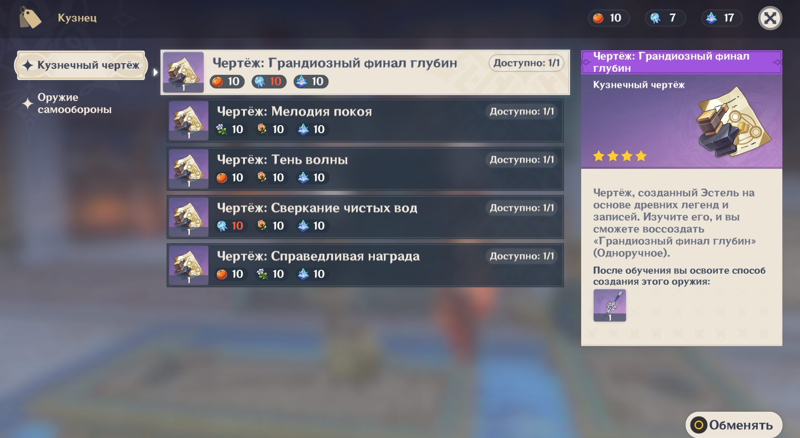 3. Как улучшить меч Грандиозный финал глубин в Genshin Impact?