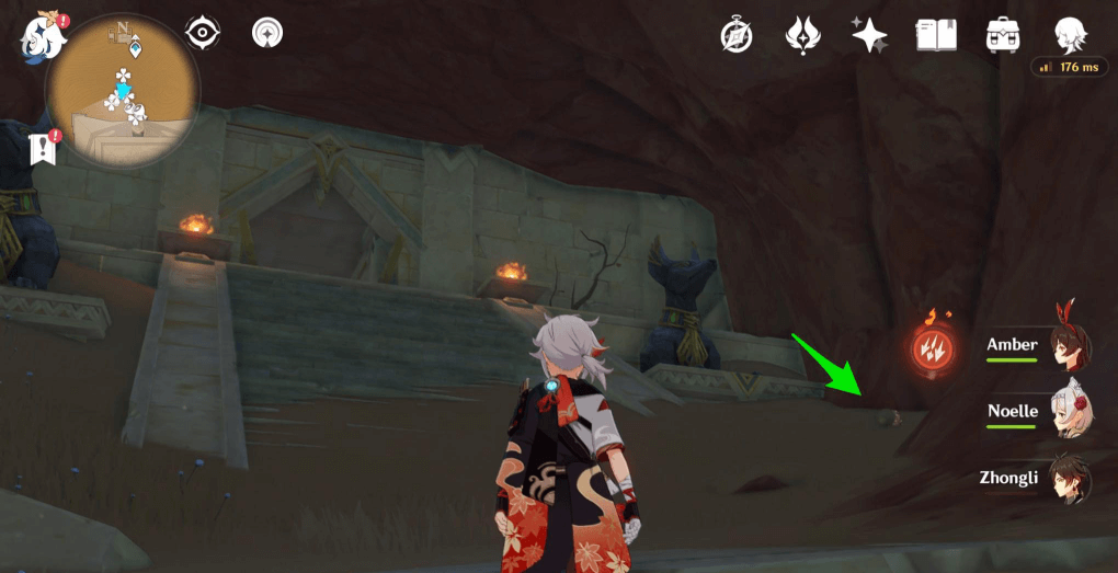 18 | Продолжайте идти вперед, пока не наткнетесь на кучу песка. Используйте способность анемо-героя, чтобы развеять песок и достать Скарабея | ![]() |