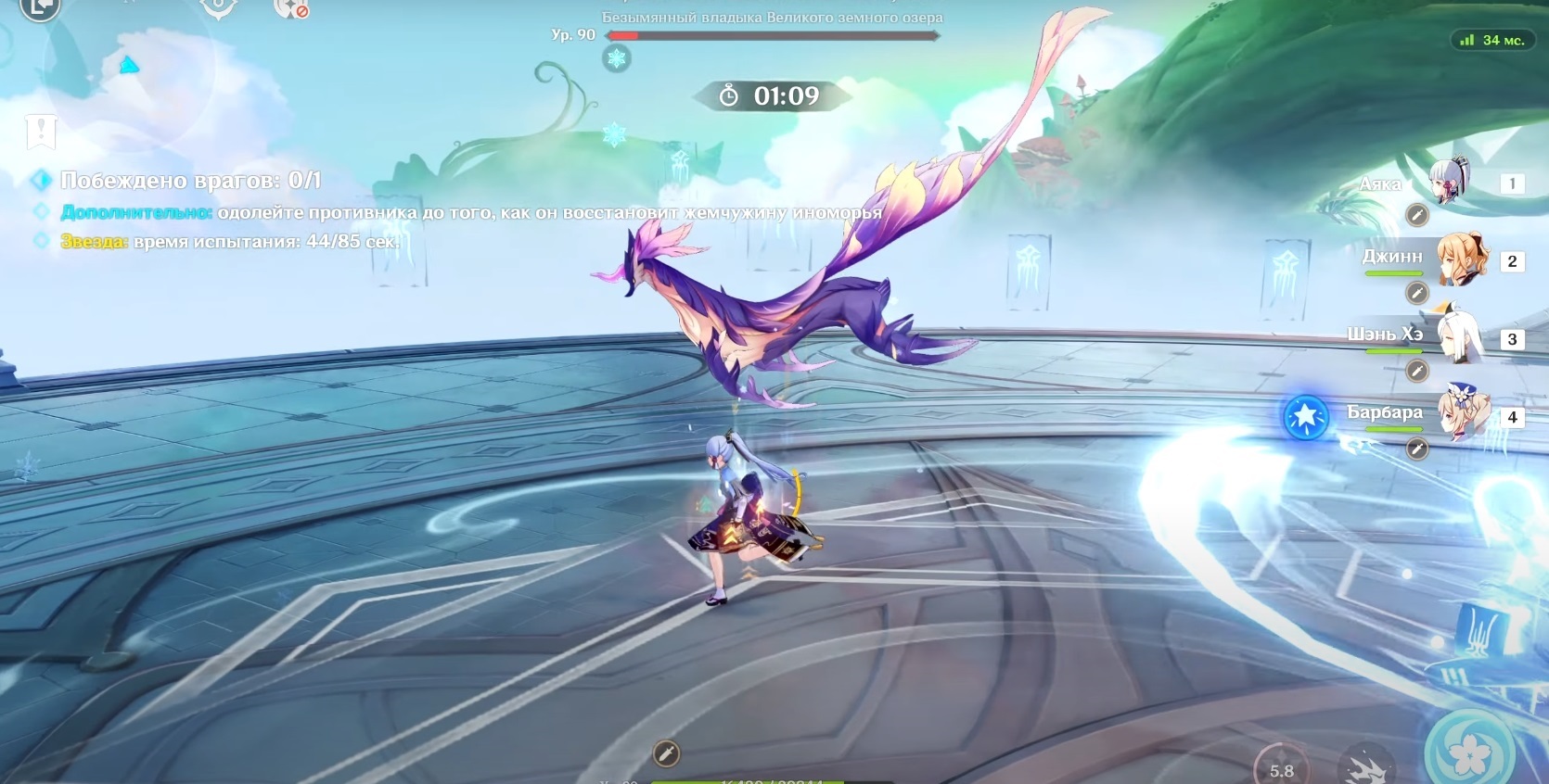 На старте сражения нужно подождать, пока пройдет начальная анимация пробуждения босса. Пока она воспроизводится, монстр получает уменьшенный урон. Держите все свои мощные умения до тех пор, пока Морской конек не окружит себя щитом, а потом используйте их, чтобы за мгновение разрушить защиту противника или снять хотя бы большую часть ее запаса. Самый лучший способ разрушения щита – использование сильных Крио-атак.