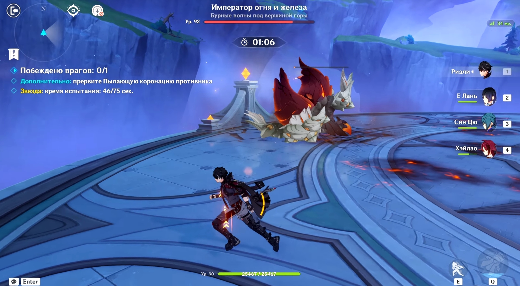 Щит монстра стойко выдерживает любые типы урона, кроме Гидро. Поэтому нужно атаковать его одним или даже двумя персонажами этой стихии, чтобы значительно упростить себе задачу. В качестве альтернативы, если у вас имеется Нёвиллет, можете использовать его одного для уничтожения защиты Императора.