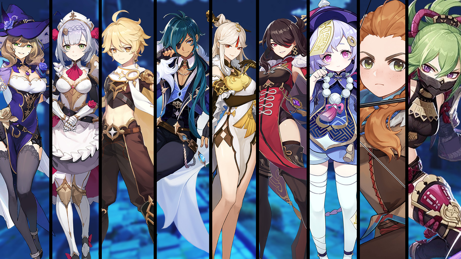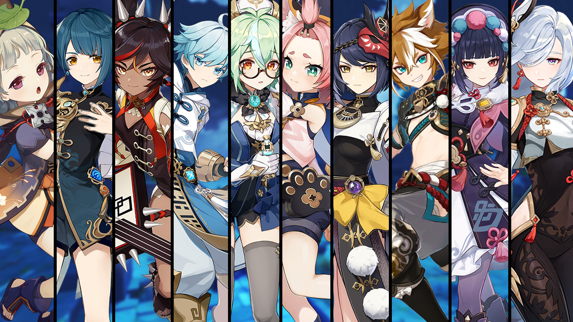 S | Е Лань, Кэ Цин, Аратаки Итто, Кокоми, Альбедо, Кли, Сяо, Аяка, Мона, Аято, Тарталья |